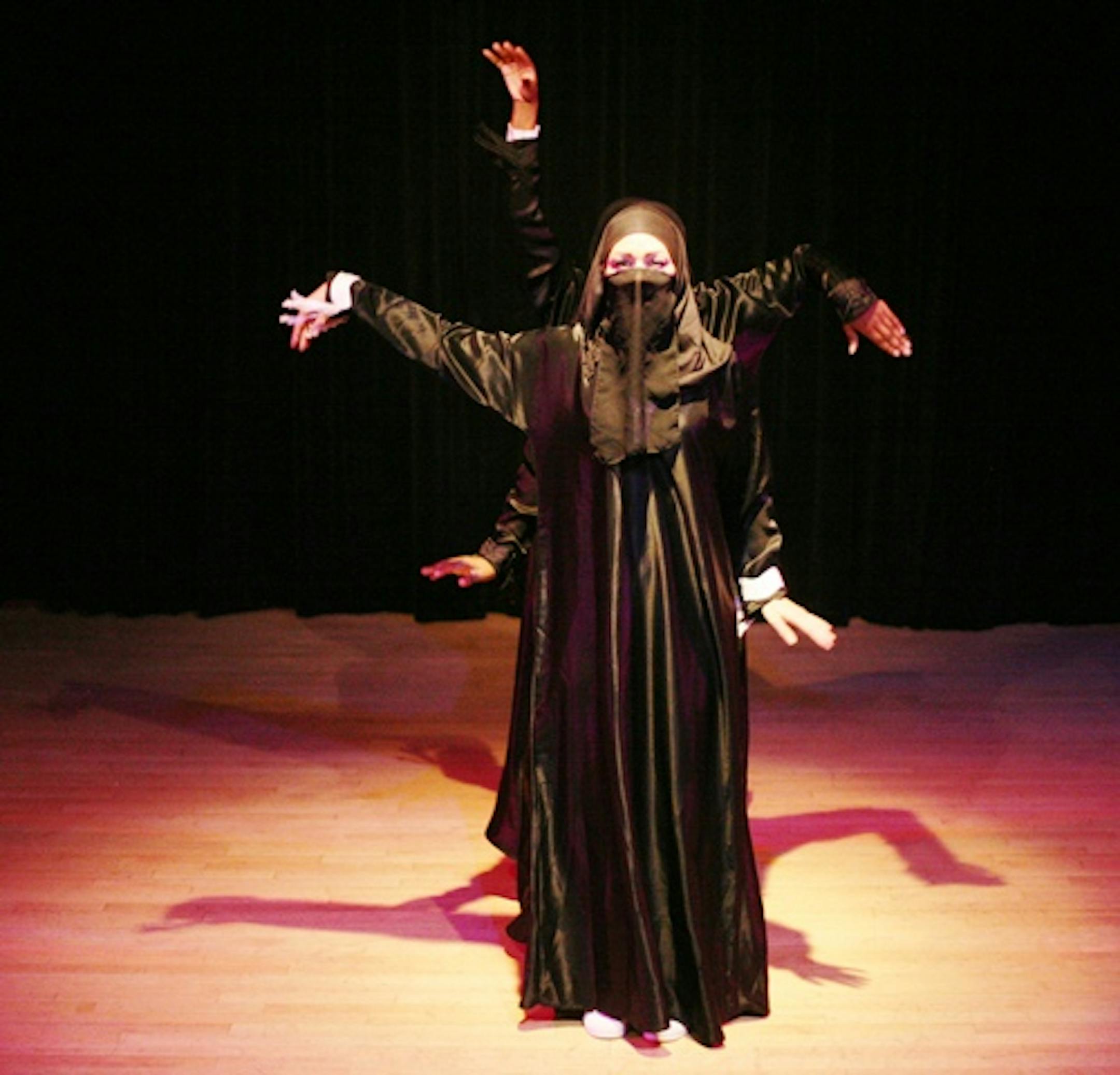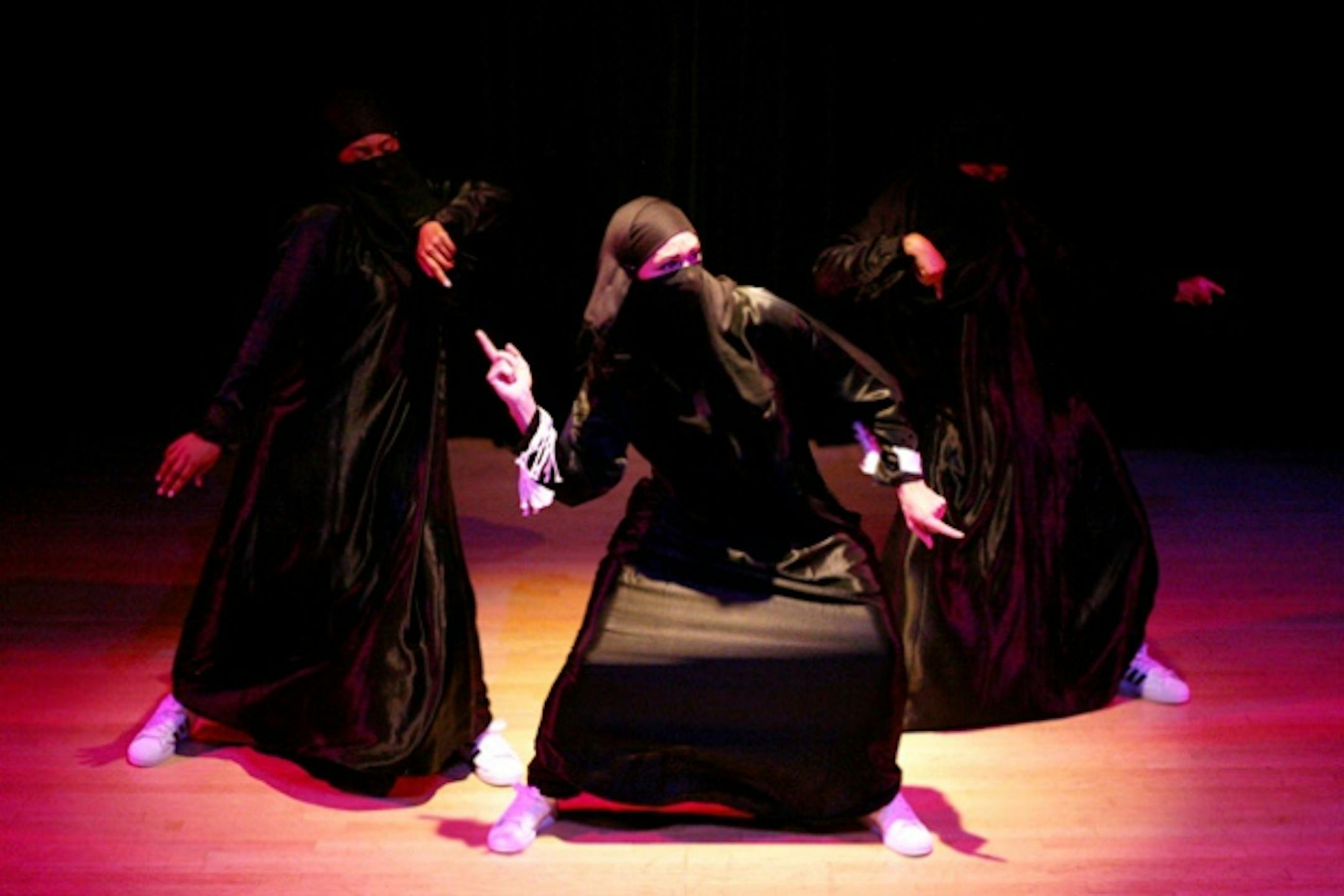 They came onstage in burqas and Adidas shoes, three severe-looking dancers with expressive hands and eyes. Their enveloping black outfits would seem inhibiting, yet they moved with strength, clarity and power, using their bodies to form recognizable figures that could have been lifted from the tombs of pharaohs or the temples of India.