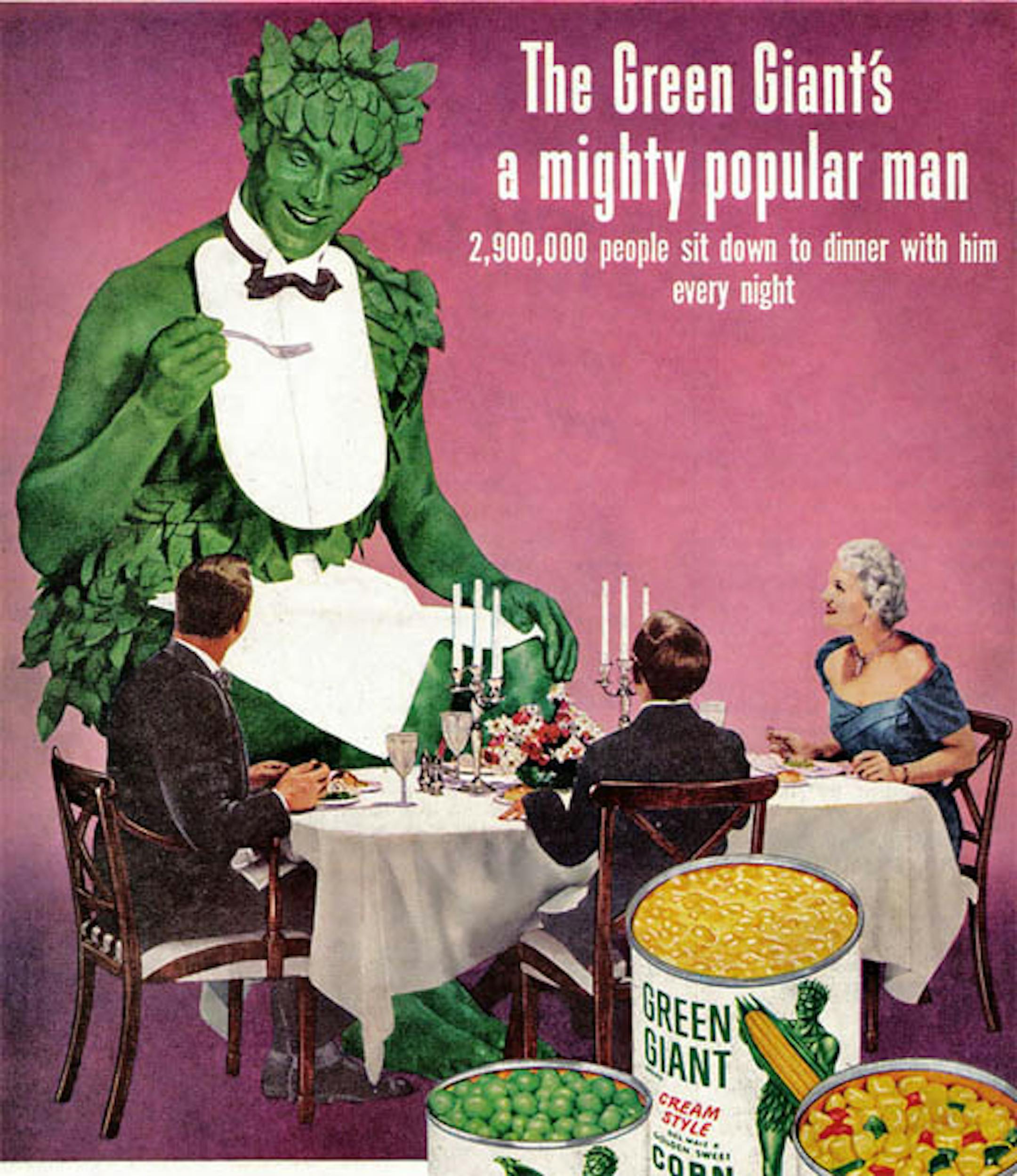 This Strib story says the Jolly Green Giant is coming back to encourage kids to eat their vegetables. Given his immense size and unnatural hue, I think he'd be more effective if he intimidated them. Not saying he should threaten to stomp their houses flat if they don't eat beans, but let's just say it's on the table.