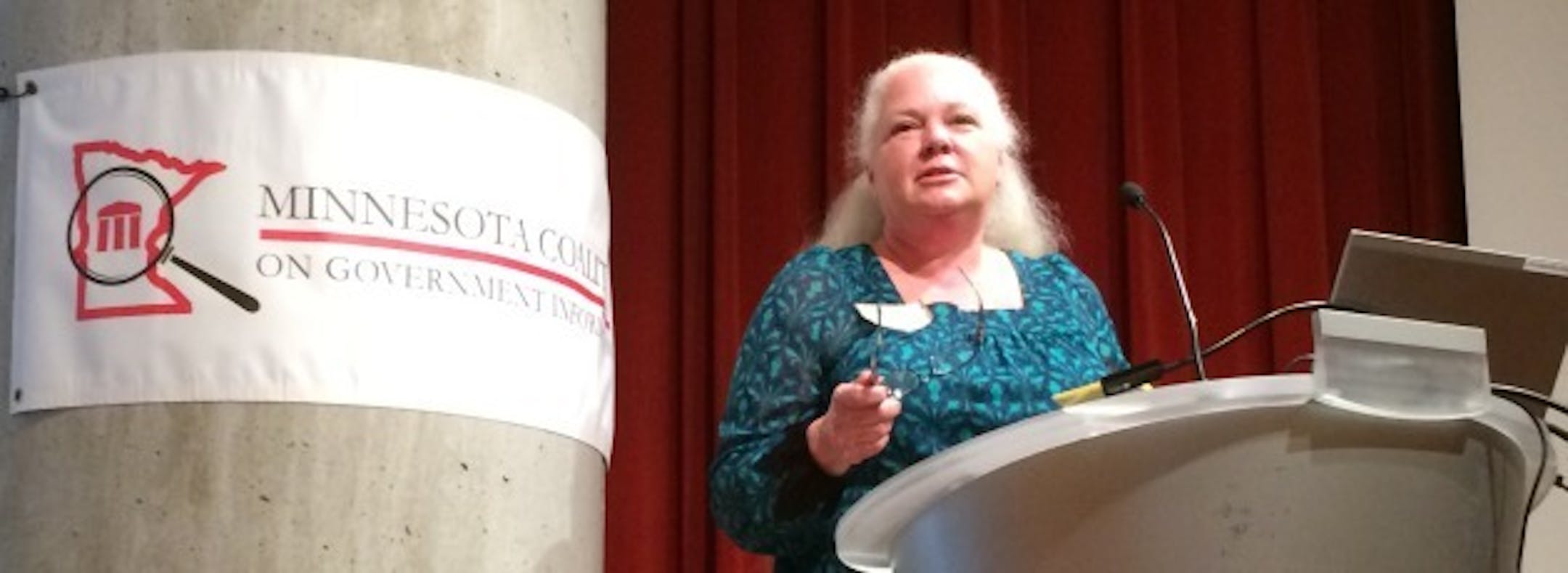 At Monday's event, she recounted her tussle with the Minnesota Chiefs of Police Association over a huge database on private citizens, the Multiple Jurisdiction Network Organization, back in 2003. The scope of that "really schlocky database" was illegal, she said, and her willingness to speak out about it helped shut it down that year. The conflicts with law enforcement over data continue however, with debate now its third year over how long police can keep data from its license plate tracking cameras, she said.