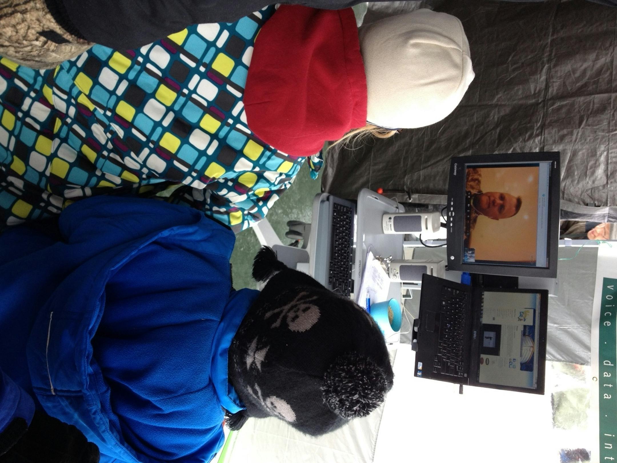One of the coolest parts of the event was the Hole of Honor. Spouses and thier kids with loved-ones deployed in Iraq or Afghanistan registered for the opportunity to video chat via Skype with their loved one overseas while the family fished. It was pretty cool to see and hear a father giving ice fishing pointers to his wife and young son and daughter from half way around the world. When the mom mentioned she didn't know how to know she was 1' off the bottom as suggested by her husband I stepped in and helped set the depth of their jig and wax worm. Like most Minnesotans I appreciate the sacrifices that our military and their families make for us. After spending a few short minutes with this family I have and even greater appreciation of the sacrifice these families make and experienced the vision of Fishing for Life founder Tom Goodrich.