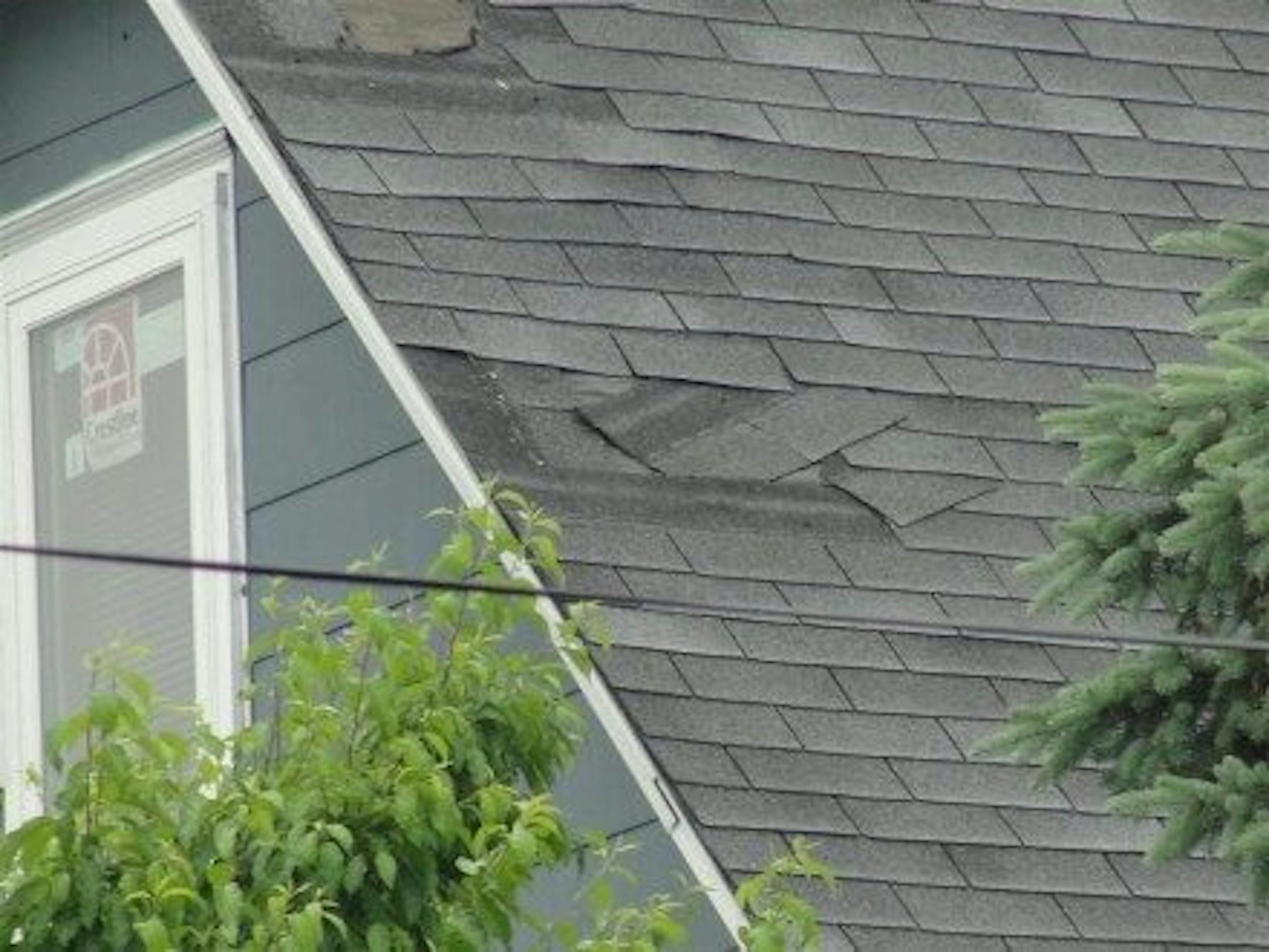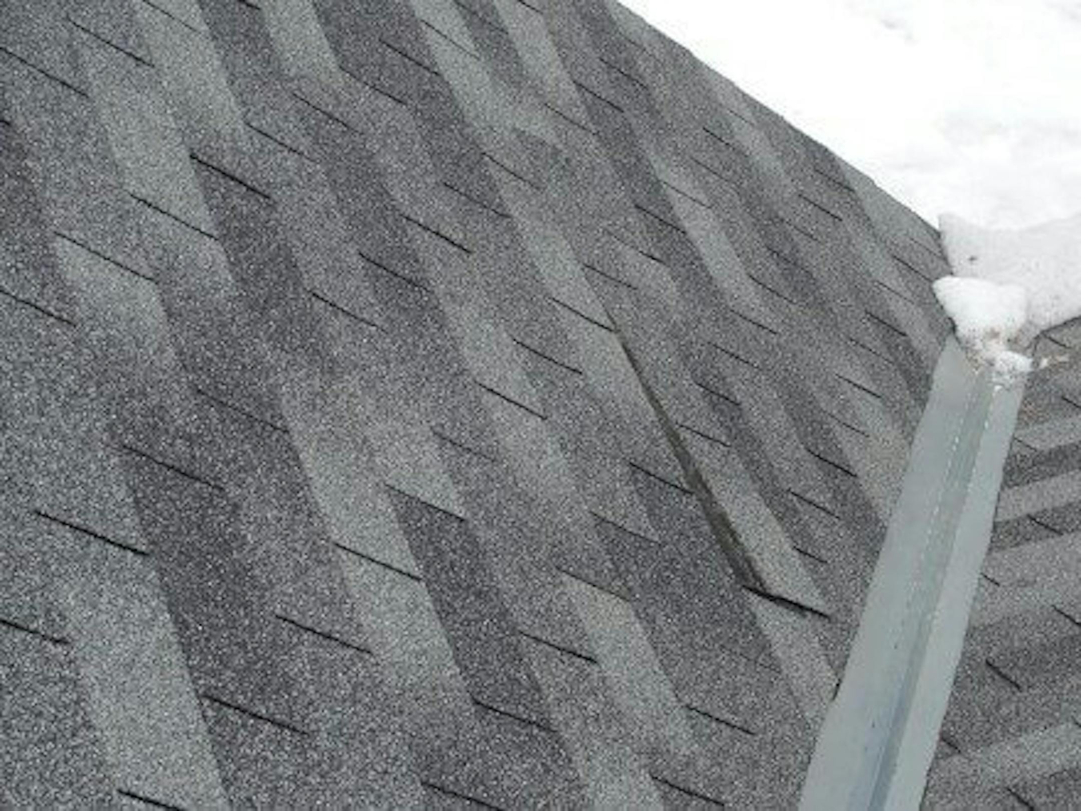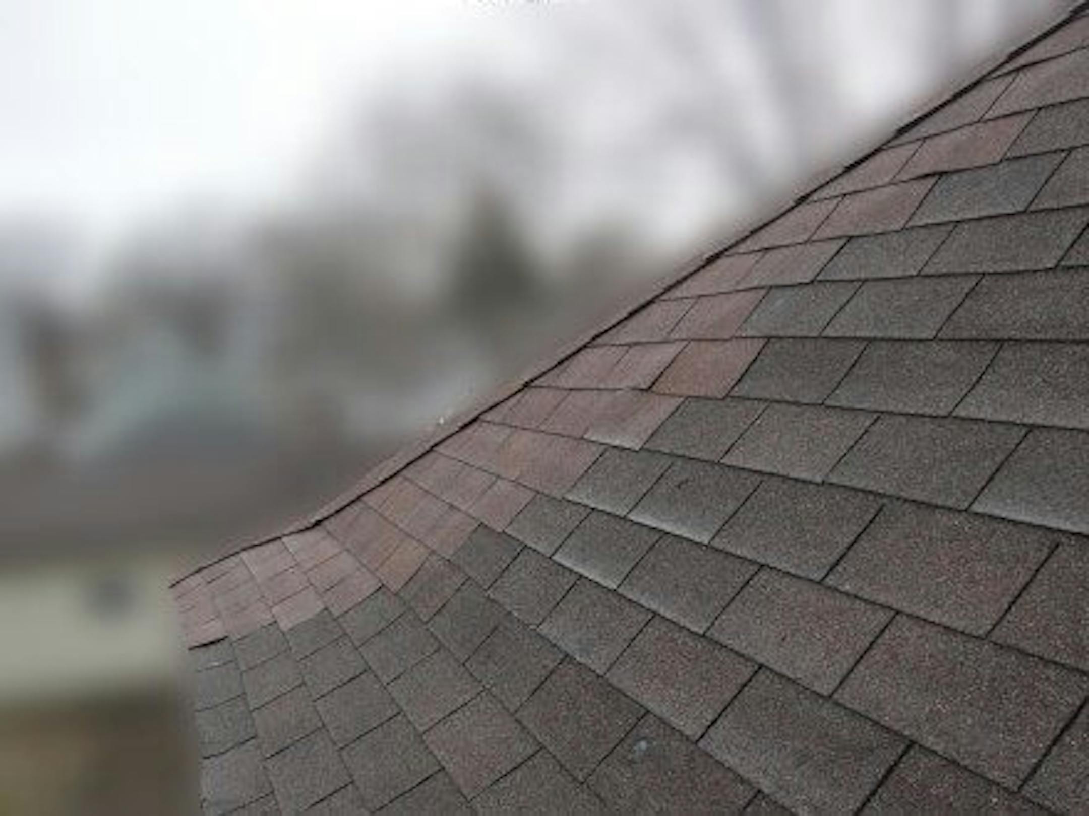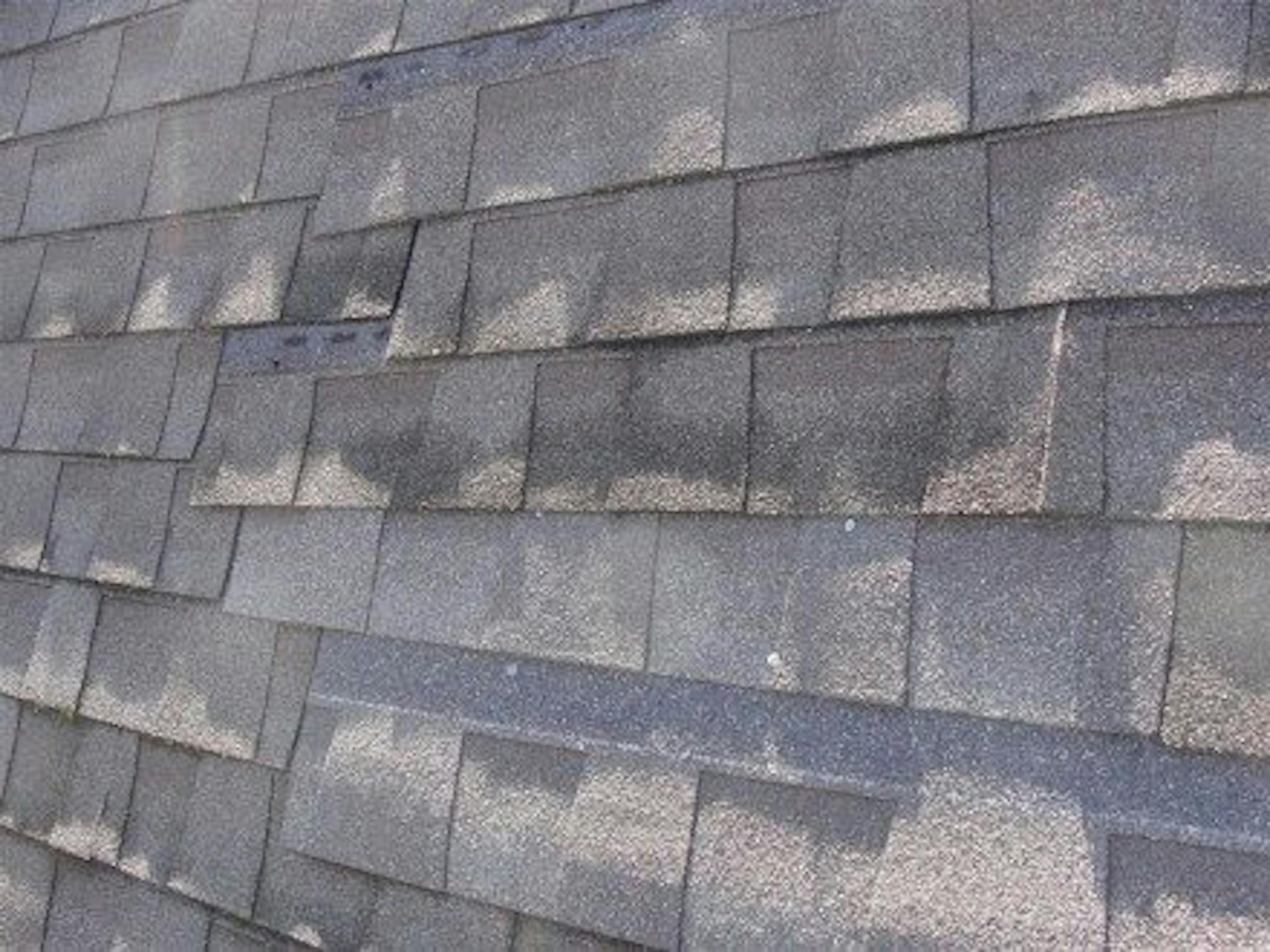 Mis-matched or patched shingles, missing shingles, and shingles sliding out of place typically indicates an improper installation. The photo below shows a horrible patch job. A 'new' roof doesn't mean a 'good' roof.