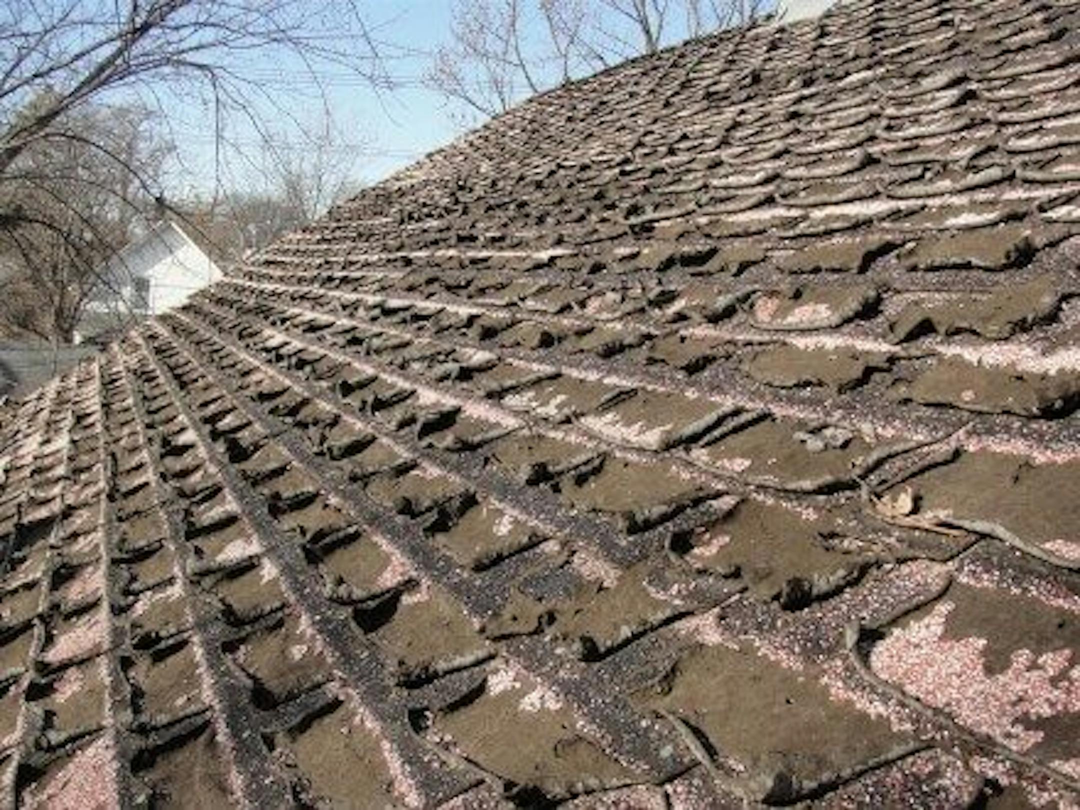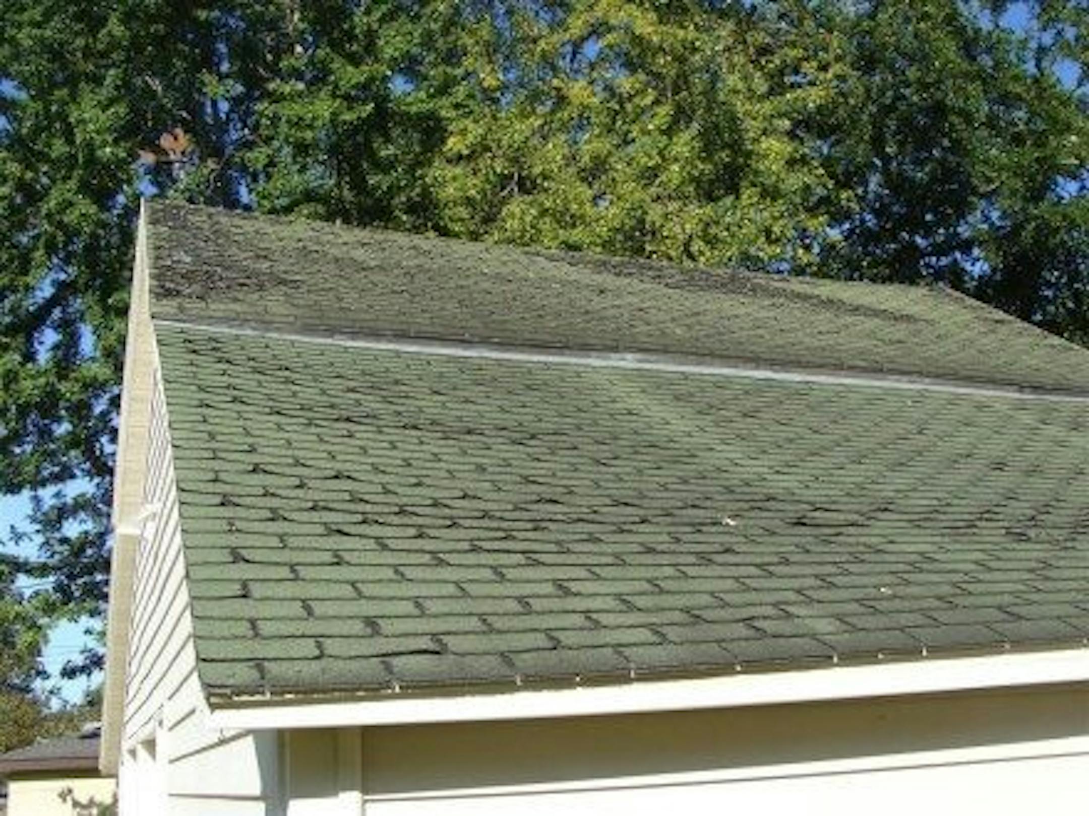 Look for any irregularities with the roof: shingles that look curled from the ground indicate an old roof. This type of curling almost always happens on the south side first, so pay special attention to that side. The photos below show examples of some particularly nasty roofs.