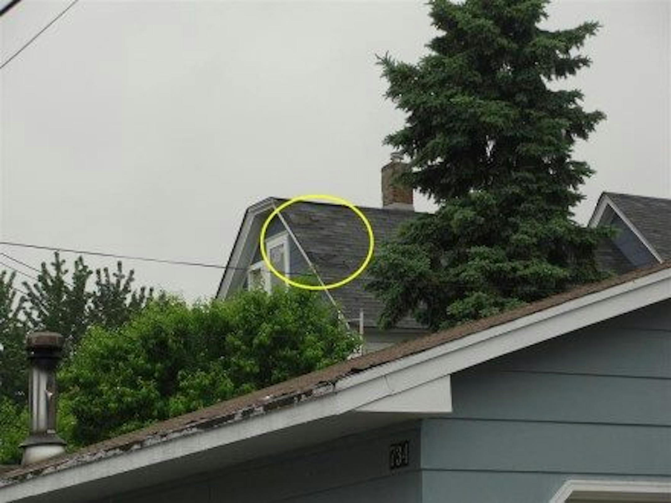 While many roof problems can only be identified by actually walking the roof or leaning a ladder up against the eaves, some defects can be easily seen from the ground. Be sure to view all sides of the roof. In older neighborhoods with tall houses that are close to each other, it may be necessary to walk a fair distance down an alley to get a good look at the roof.