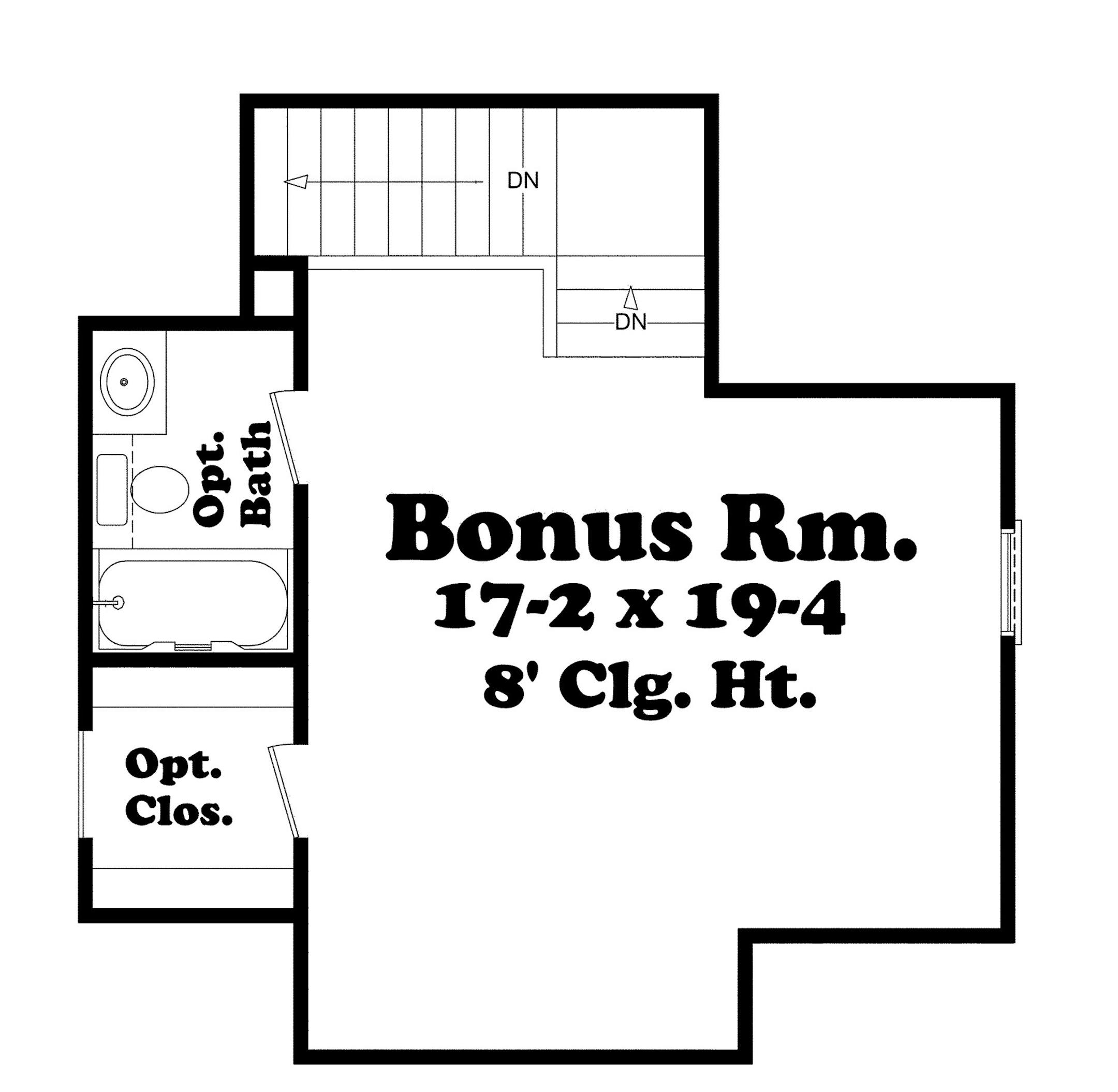 This country-style one-story home is designed for a growing family, but is adaptable for different lifestyles. The split-bedroom layout gives privacy to the master suite, while maintaining the convenience of first-floor living. The master suite includes a decorative ceiling, a jet tub and two walk-in closets. The kitchen features a breakfast nook and opens to the great room, which is warmed by a fireplace. The fourth bedroom can easily double as a study, with optional doors that open to the foyer. The second-level bonus room offers an opportunity to expand later. There are several outdoor living areas, with front and back porches, as well as a patio.