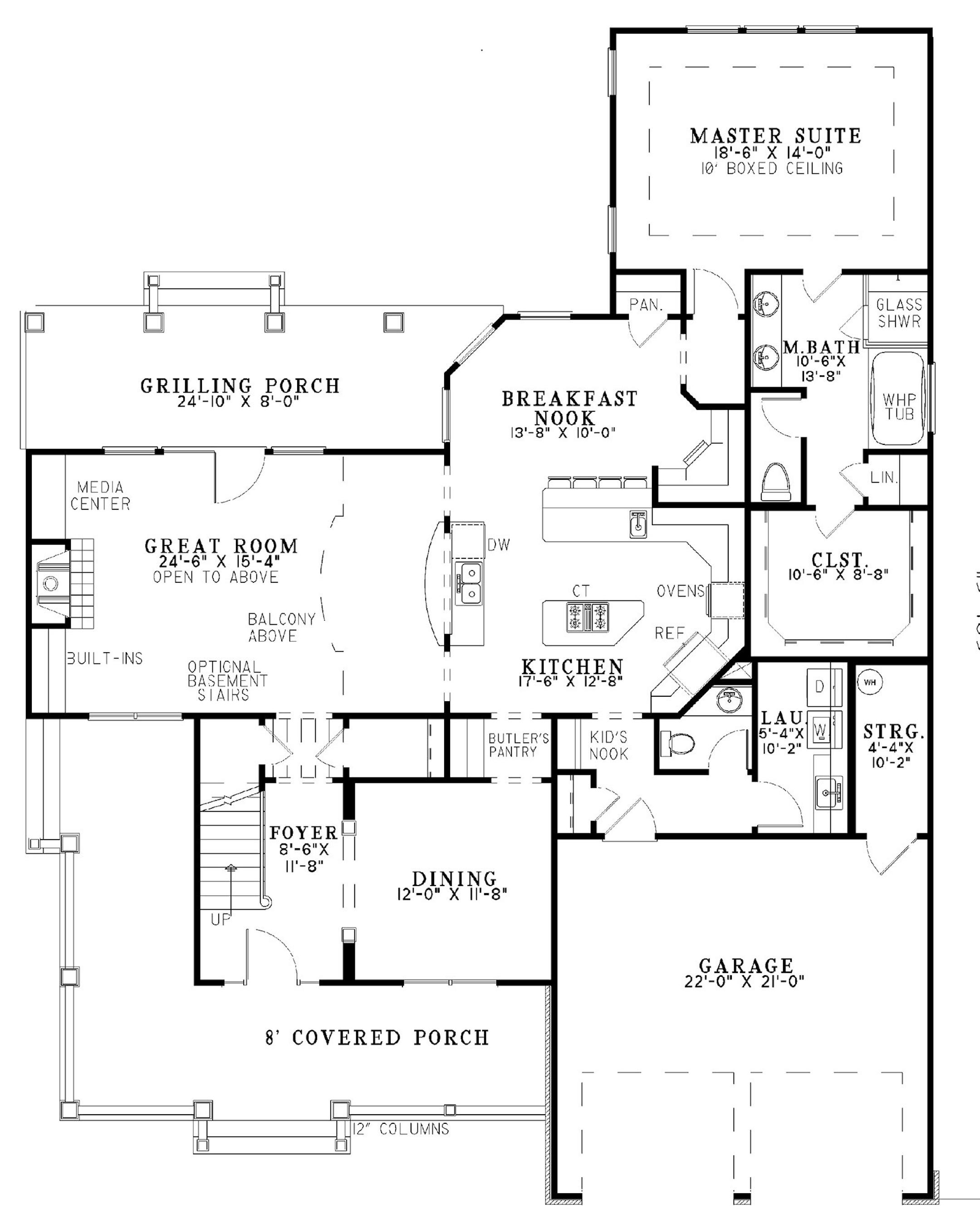 A wraparound porch adds both curb appeal and an outdoor living space to this country home. The spacious kitchen offers seating for four at the snack bar, another serving counter and sink station, and a separate central island with the range. A corner desk in the breakfast nook, a butler's pantry and a nearby "kid's nook" provide more storage. The master suite is appointed with a whirlpool tub, dual sinks and walk-in closet. Upstairs, three more bedrooms share a computer center and bonus room.