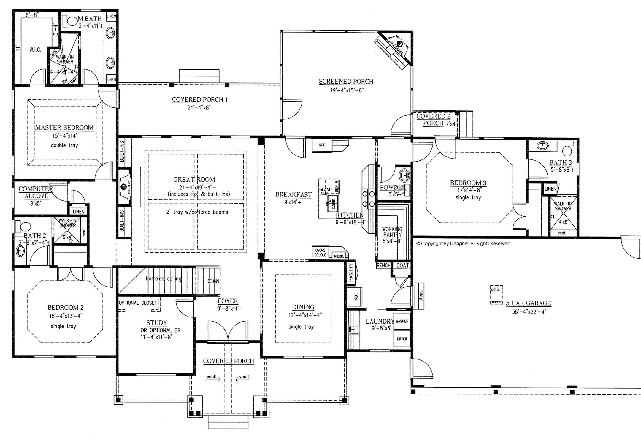 Paired columns and decorative trusses add graceful curb appeal to this Craftsman home. Inside, the great room flows into an informal dining area and then the island kitchen. Other places to enjoy a meal include the formal dining room and outside on the fireplace-warmed screened porch. The third bedroom offers privacy and space for guests. On the other side of the floor plan, the master suite features a big shower, tray ceiling in the bedroom and private door to the porch. A study and the mudroom helps keep homeowners organized. The basement can be finished to hold two more bedrooms, a kitchenette and various fun rooms.
