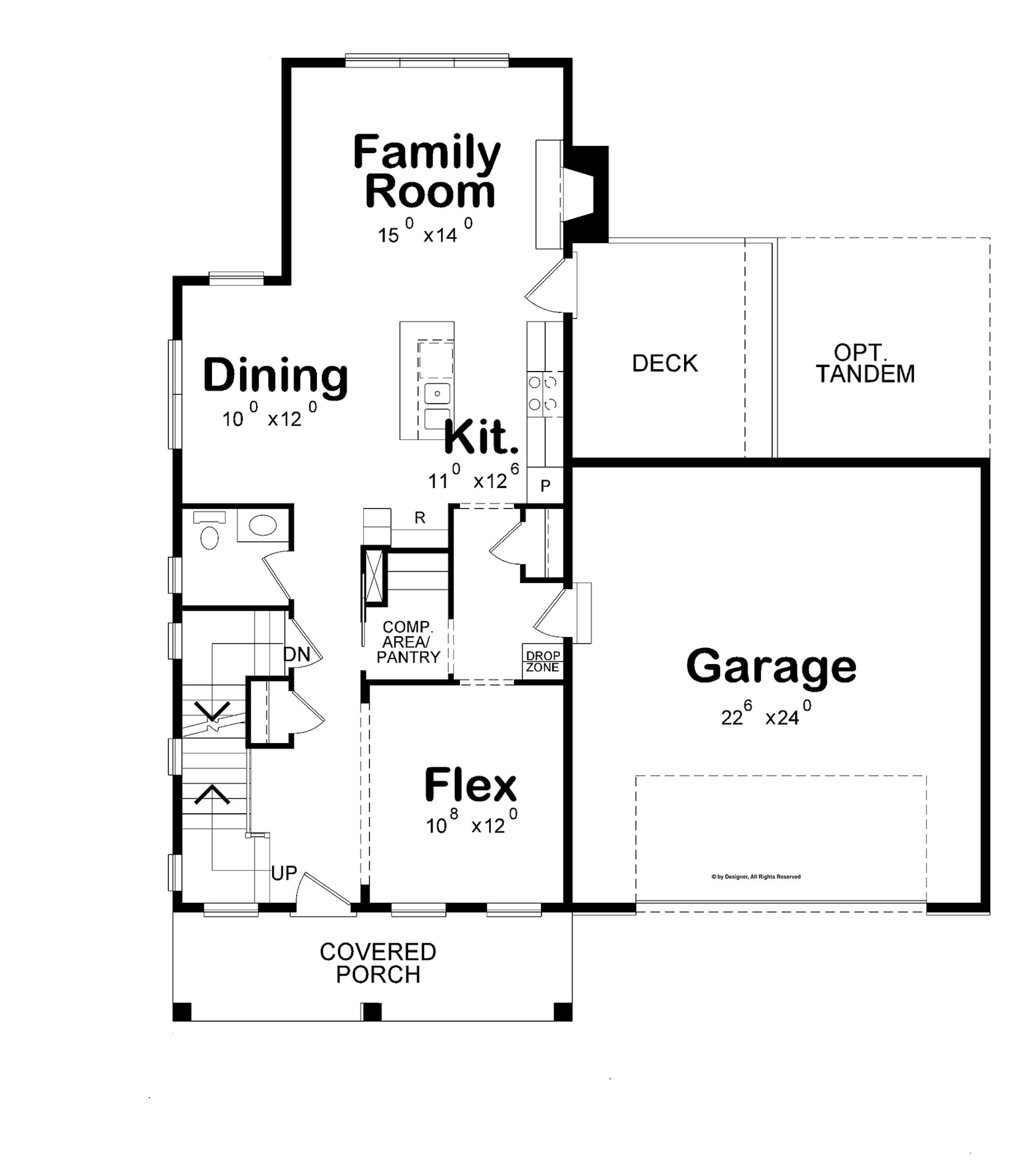 Gables and detailed porch columns, as well as a blend of natural materials, give this home Craftsman curb appeal. The contemporary open layout inside offers a perfect blend of old and new for today's families. By the front entry, a flex room provides space for working or entertaining. A compact computer area offers storage and a place to charge electronics. At the heart of the home, the island kitchen flows into the dining room and family room, which is warmed by a fireplace. Upstairs, all three bedrooms include walk-in closets and easy proximity to the laundry room. The owners' suite features double sinks, large shower and a walk-in closet.