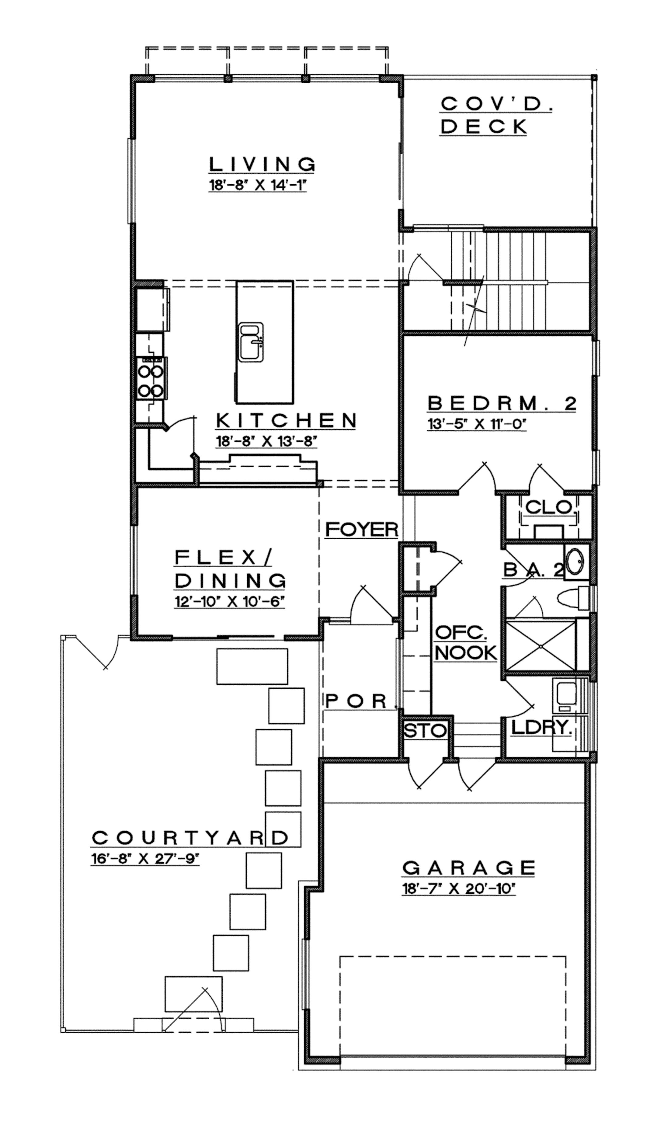 Sleek, sophisticated and filled with light, this contemporary home is designed for today's families. Perfect for a narrow city lot, this four-bedroom home offers an open layout and nice indoor/outdoor flow. Clerestory windows, high horizontal windows on side walls, large rear windows and a wall that stops short of the ceiling bring natural daylight into the rooms. Awning roofs and large roof overhangs shade walls and windows. The walled courtyard creates a private outdoor living area that flows inside via a flexible dining room. The living room combines with the kitchen to form a big, casual gathering space. A covered deck provides a shady spot to sit outside. The main-floor bedroom can serve as a guest suite or office, with a full bathroom steps away. Three more bedrooms are upstairs, including a master suite appointed with a spacious shower, two sinks and walk-in closets.