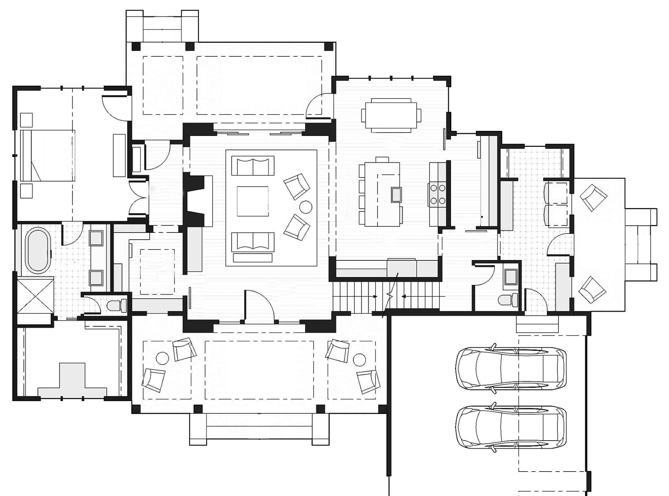 This cool modern farmhouse features many details to make everyday life easier. A number of barn doors open from the great room to the study — which is a handy home office — and on both sides of the generous pantry. A large island in the kitchen includes room for seating on two sides for friends and family to talk with each other. Unwind in the main-floor master suite, complete with a huge walk-in closet, two sinks and access to the back porch. Three more bedrooms upstairs share two baths and access to the bonus room, along with another laundry closet. Covered porches offer outdoor living in both the front and rear of the home.