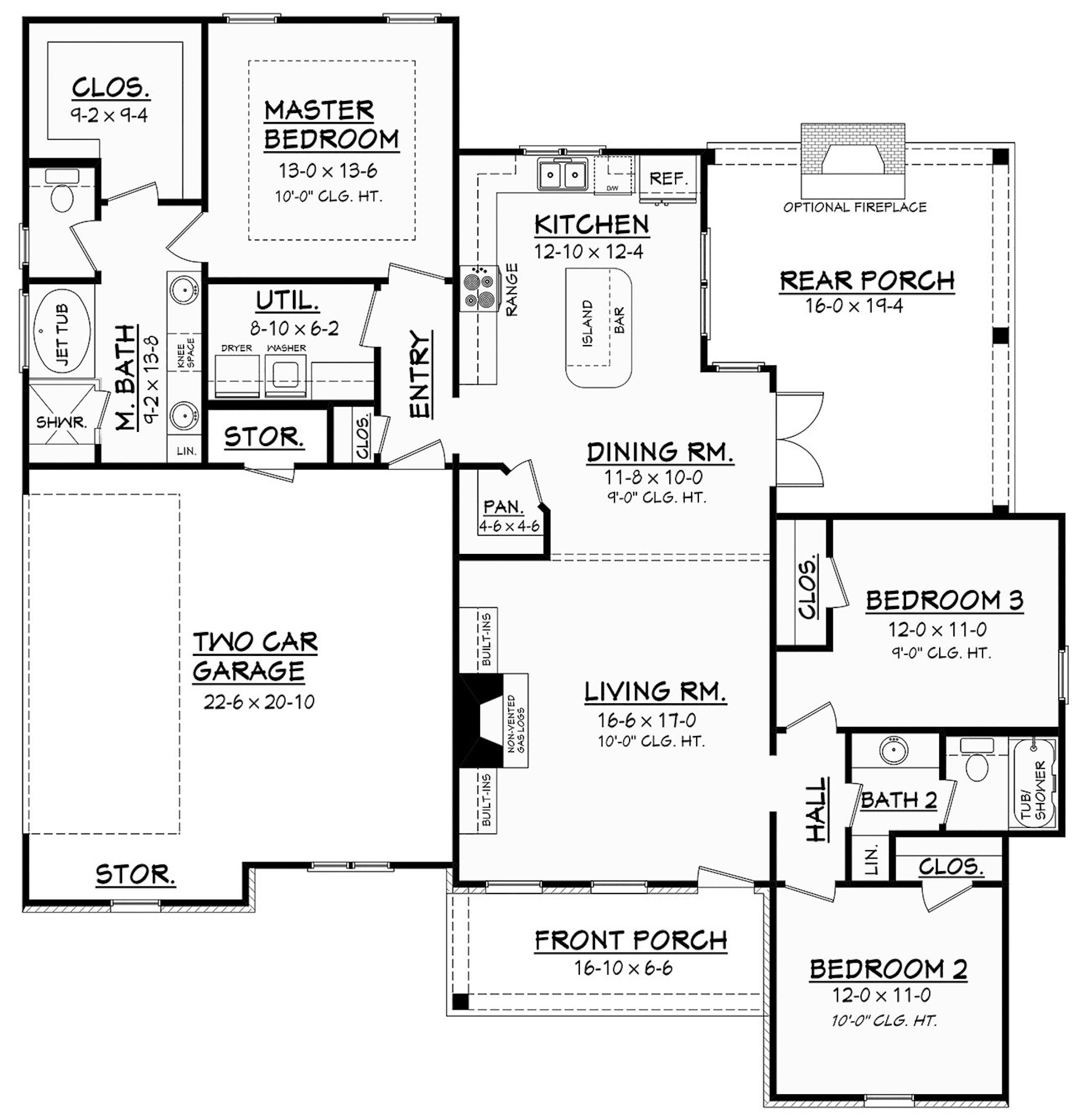 With its graceful brick exterior and an amenity-filled interior, this ranch home shows how much you can do with 1,600 square feet. The side-facing garage and prominent front porch create a neighborhood-friendly facade. The split-bedroom layout offers privacy to the master suite, which features a large walk-in closet, two sinks, a jet tub and a separate shower. Two more bedrooms share a hall bath. The centrally located kitchen includes an island bar. Nearby, the open dining room features French doors to the rear porch, which is equipped with a fireplace. Another fireplace offers a focal point in the living room. Other highlights include a walk-in pantry, extra storage in the garage and easy access to the laundry room from the master suite.