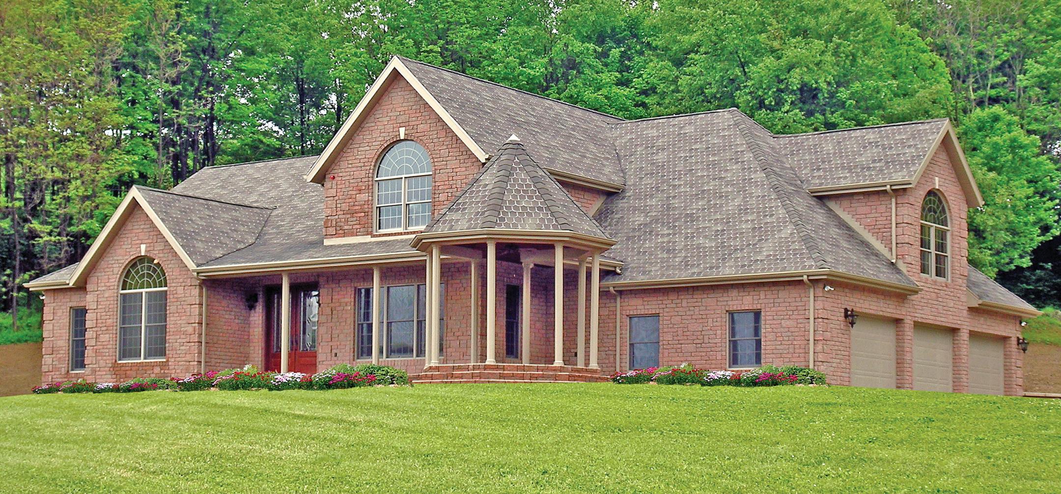 This distinctive home features a gazebo entry and a private back stair and loft. The facade includes a welcoming front porch, dramatic rooflines and charming half-round windows. The room off the foyer can serve as a living room, library or even a guest suite. The vaulted great room, which includes a fireplace and skylights, adjoins the breakfast room and U-shaped kitchen with center island. The private first-floor master suite includes a stepped ceiling, big walk-in closet and compartmented private bath. Two large bedrooms on the second floor, plus an unfinished loft area located over the garage, are ideal for a playroom or guest suite.