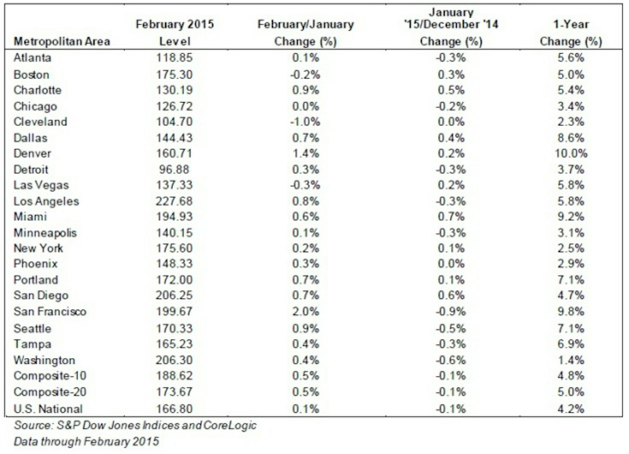 Case-Shiller: Home prices during February were up 3.1 percent compared with 4.2 percent nationwide.