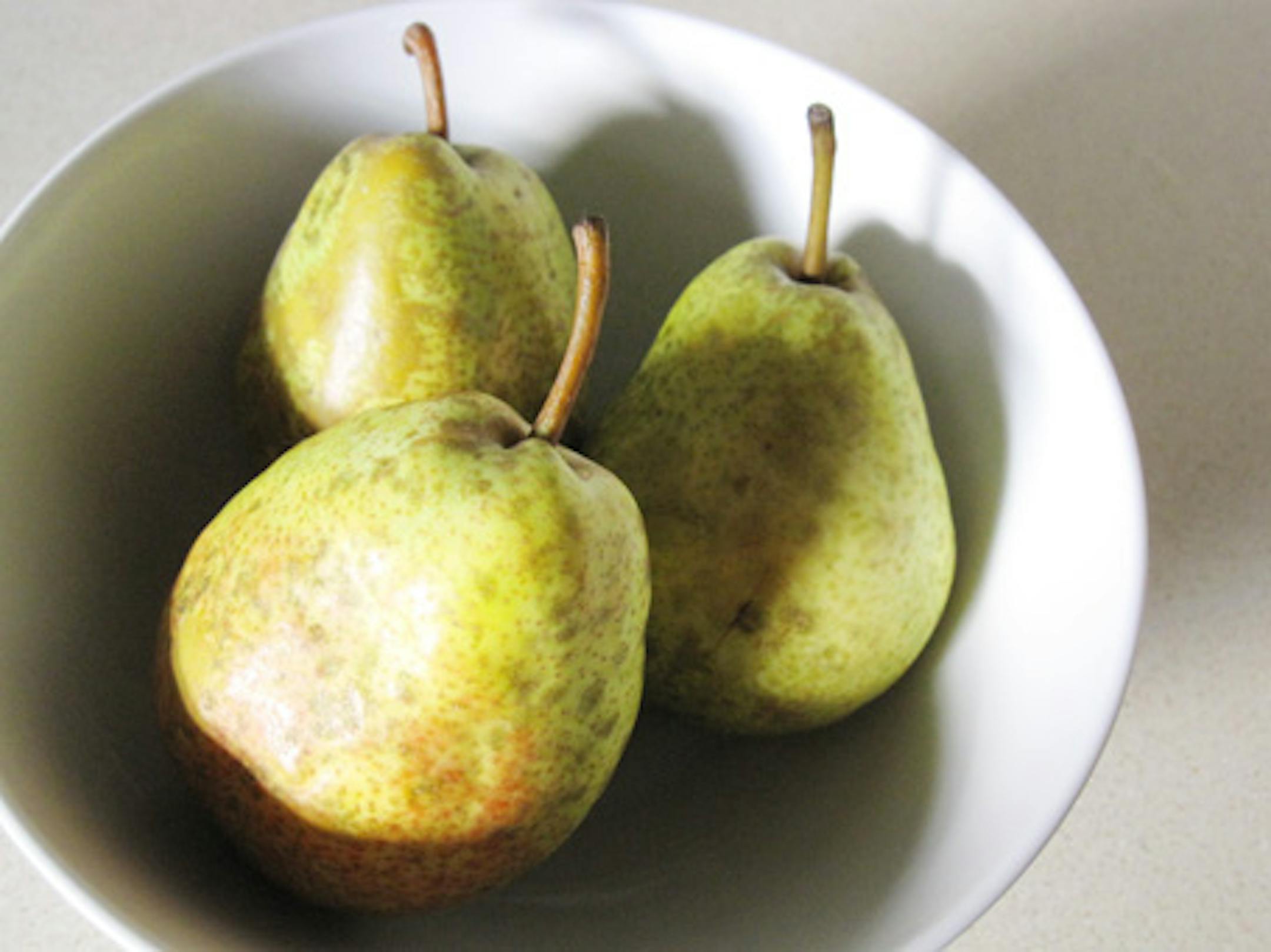 My first instinct was to make a pear crisp. I cut a pear into slices and popped one into my mouth.