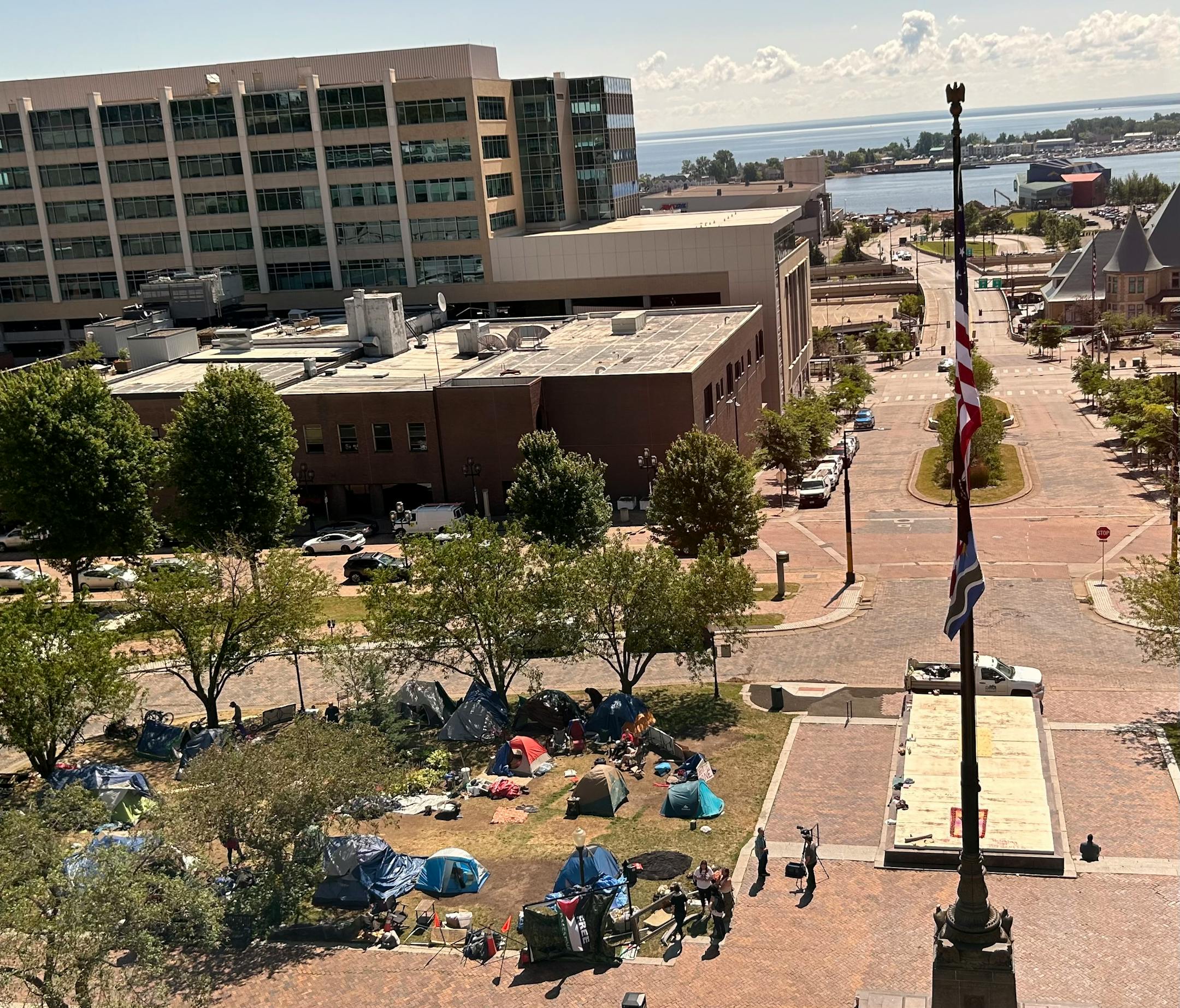 The encampment started three months ago as a pro-Palestine protest, but has shifted to a gathering site for people experiencing homelessness. It sits downtown and in plain view and was at the heated center of a proposal by Mayor Roger Reinert that would have criminalized camping on city property — a plan the City Council modified to limit the fine to $200 and remove language defining it as a misdemeanor. It passed 5 to 4 during last week’s City Council meeting.