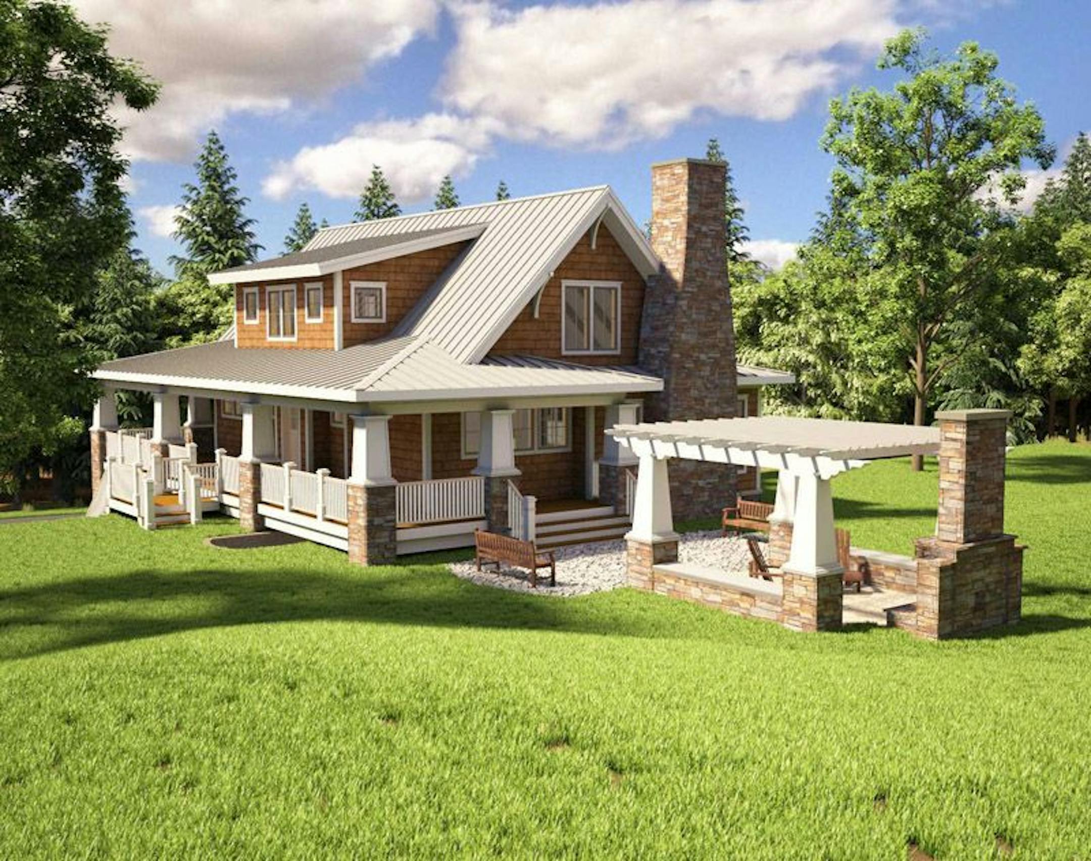 This plan is ideal for a vacation home with a large wraparound covered porch for views and outdoor living space. The open kitchen, dining and living rooms flow from one to the next and feature a stone fireplace.