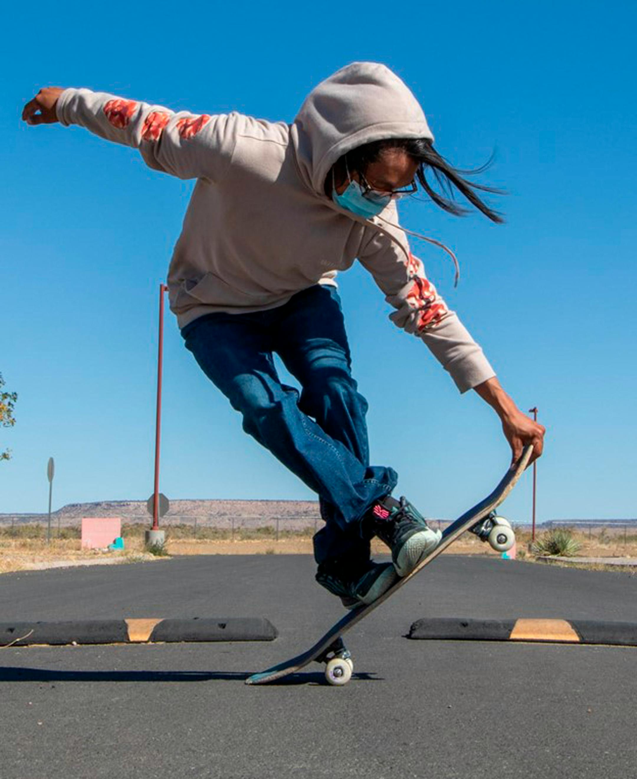 They set up tricks with old railroad ties and lumber, sometimes using their own skateboards to move the materials in place. During a pandemic that led to lockdowns, curfews and mask mandates on the Hopi reservation, the solo nature of skateboarding was a comfort.