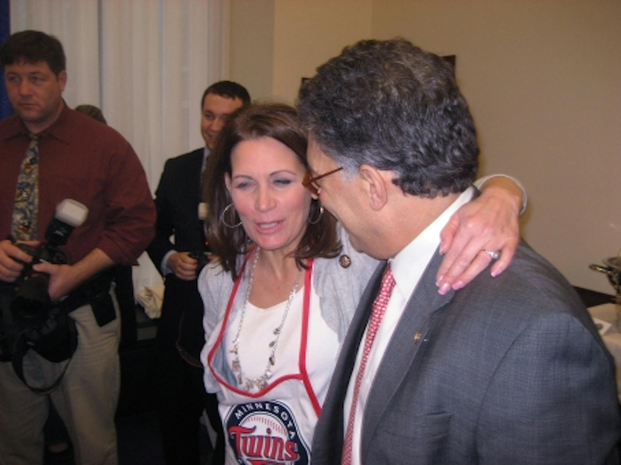 Five Democrats and one Republican, Rep. Michele Bachmann, who wore a Minnesota Twins apron, headed over to Franken's office for a contest judged by former Minnesota Reps. Vin Weber and Gerry Sikorski and MinnPost reporter Derek Wallbank.
