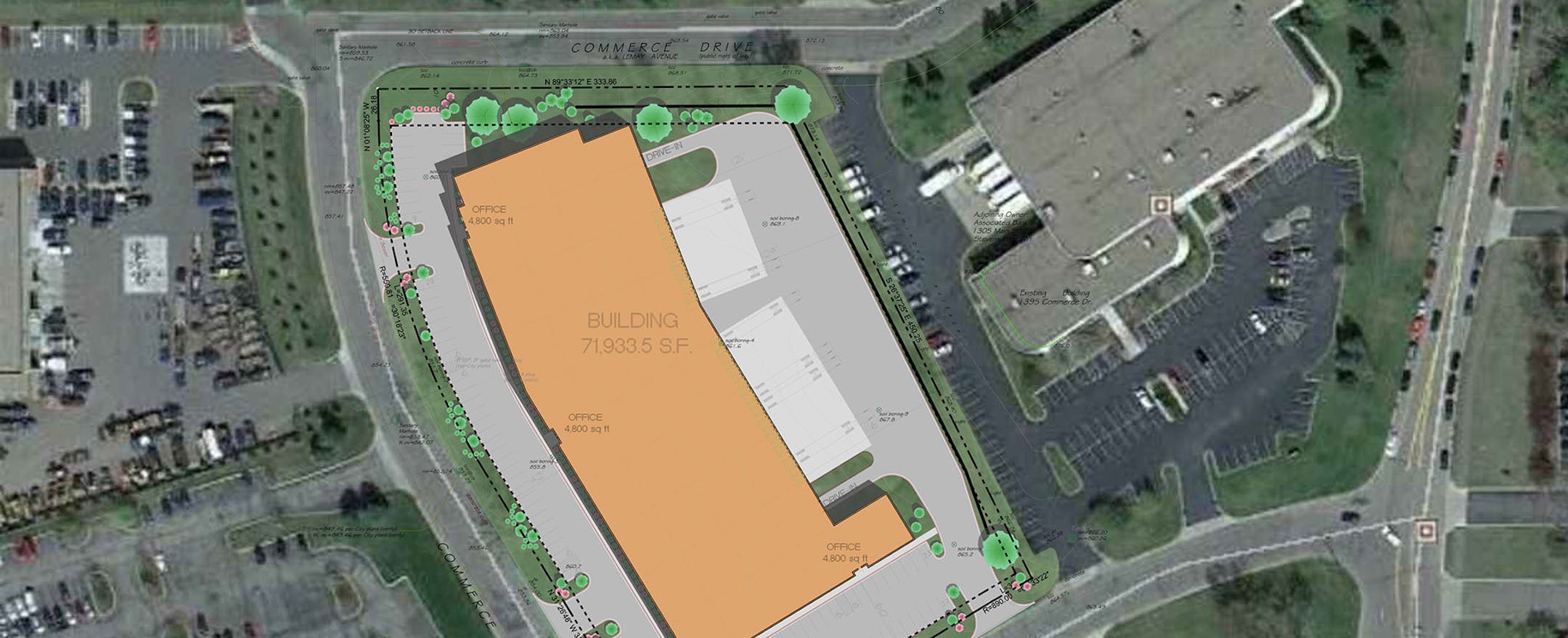 Scannell's planned building is a "Type II industrial flex" facility would include approximately 57,600 square feet of warehouse space and 14,400 square feet of office space. The ceiling heights would be 24 feet and the building would feature 160-foot bay depths and a 120-foot-deep truck court.