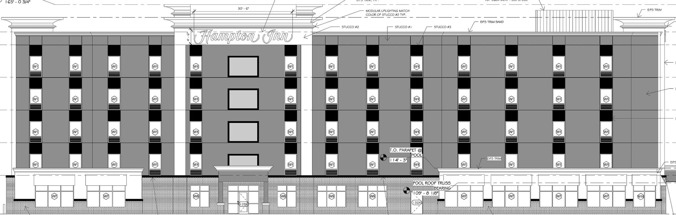 Exterior building materials would include cement fiber board siding, four types of stucco and brick.