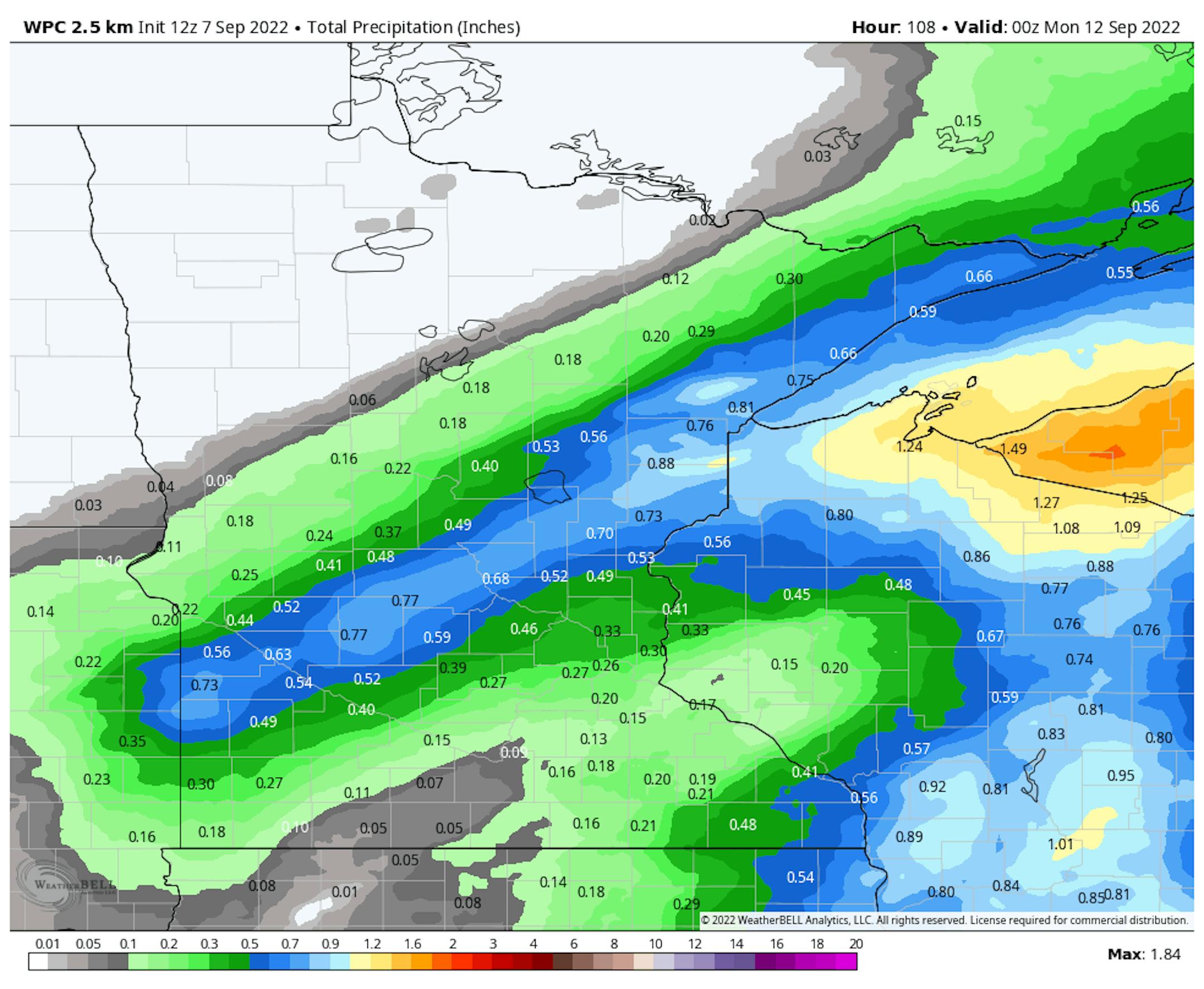 The heaviest rain in the Thursday through Sunday timeframe looks to fall across central Minnesota to the North Shore, with rainfall amounts of 0.50" to 1" possible in these areas.