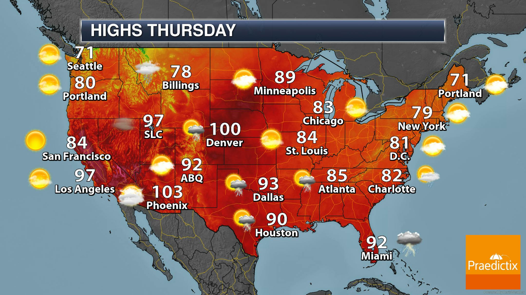 Another day with a blast of summer-like weather is on the way for Thursday with highs climbing up to around 90F in the metro. A mostly sunny sky is expected ahead of a cold front moving in overnight into Friday morning.