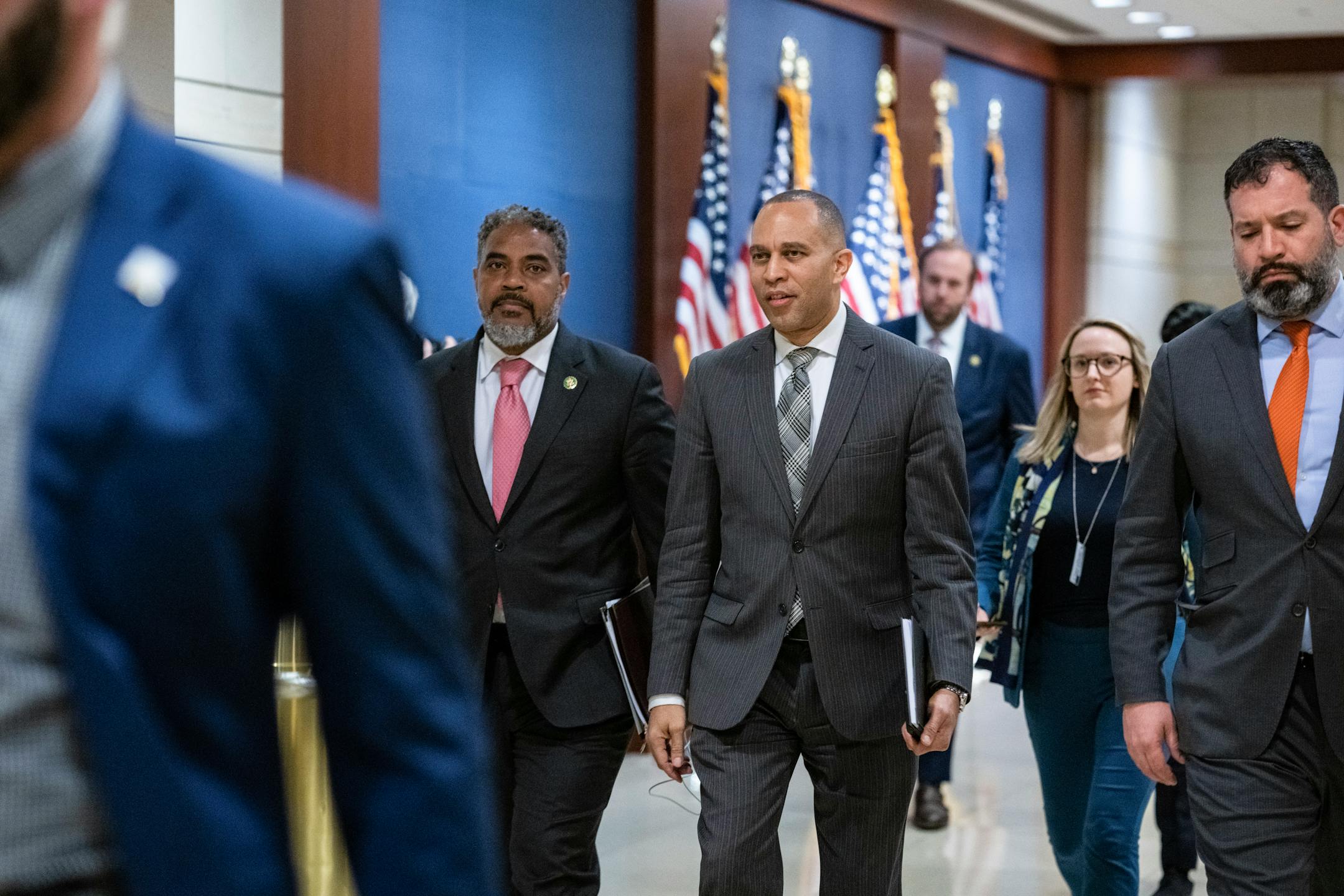"It is imperative that members make every effort to sign the discharge petition today," Jeffries wrote. If all 213 of their members signed on, Democrats would need at least five Republicans to join them, and it is unlikely they could win those converts unless the situation grew dire.
