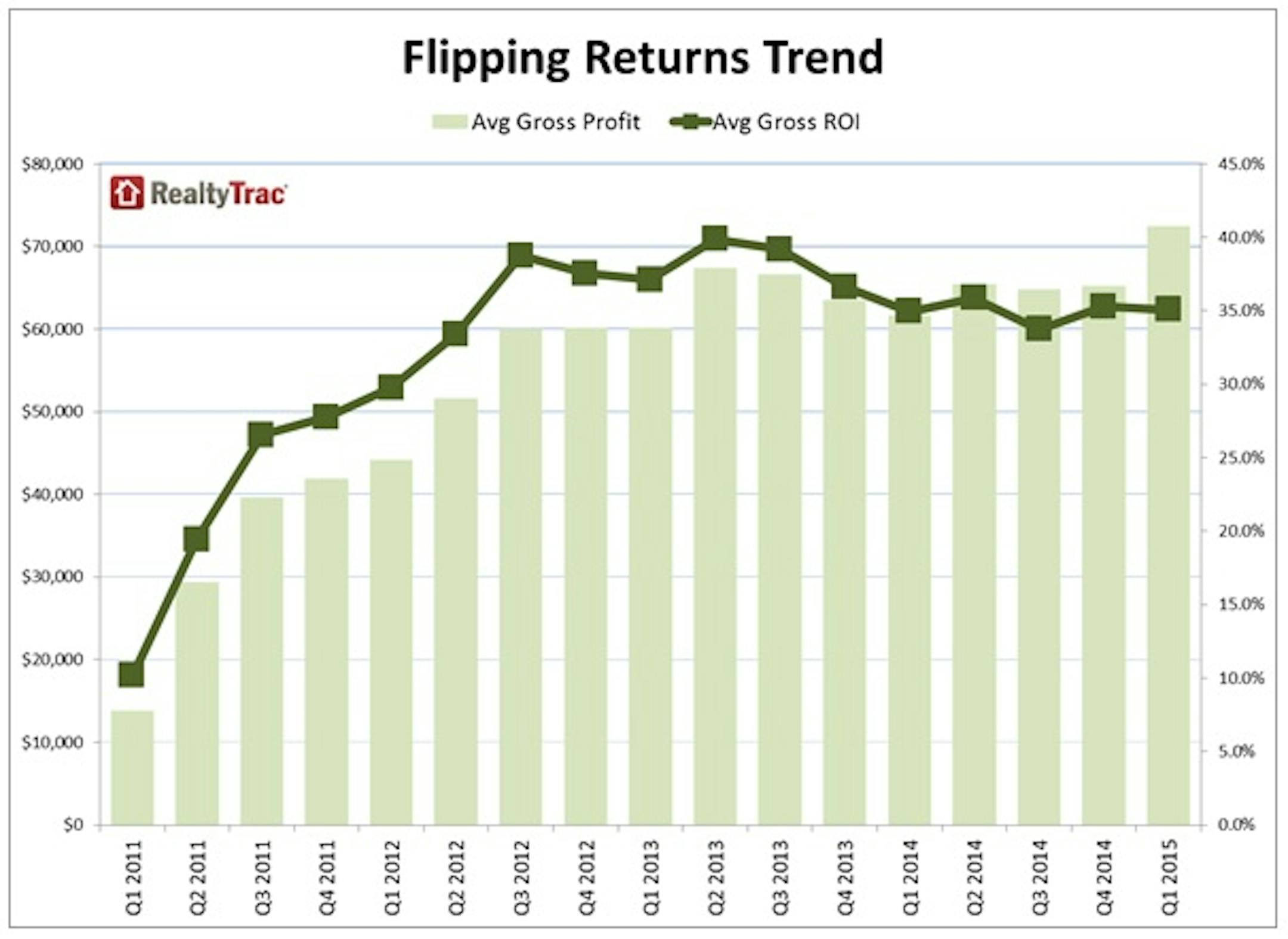 House flippers across the country pulled in record profits during the first three months of the year, according to a new report from RealtyTrac. The group said that on average flippers grossed $72,450, and that 17,309 single-family homes were flipped, or sold as part of an arms-length sale for the second time within a 12-month period, during the first quarter.