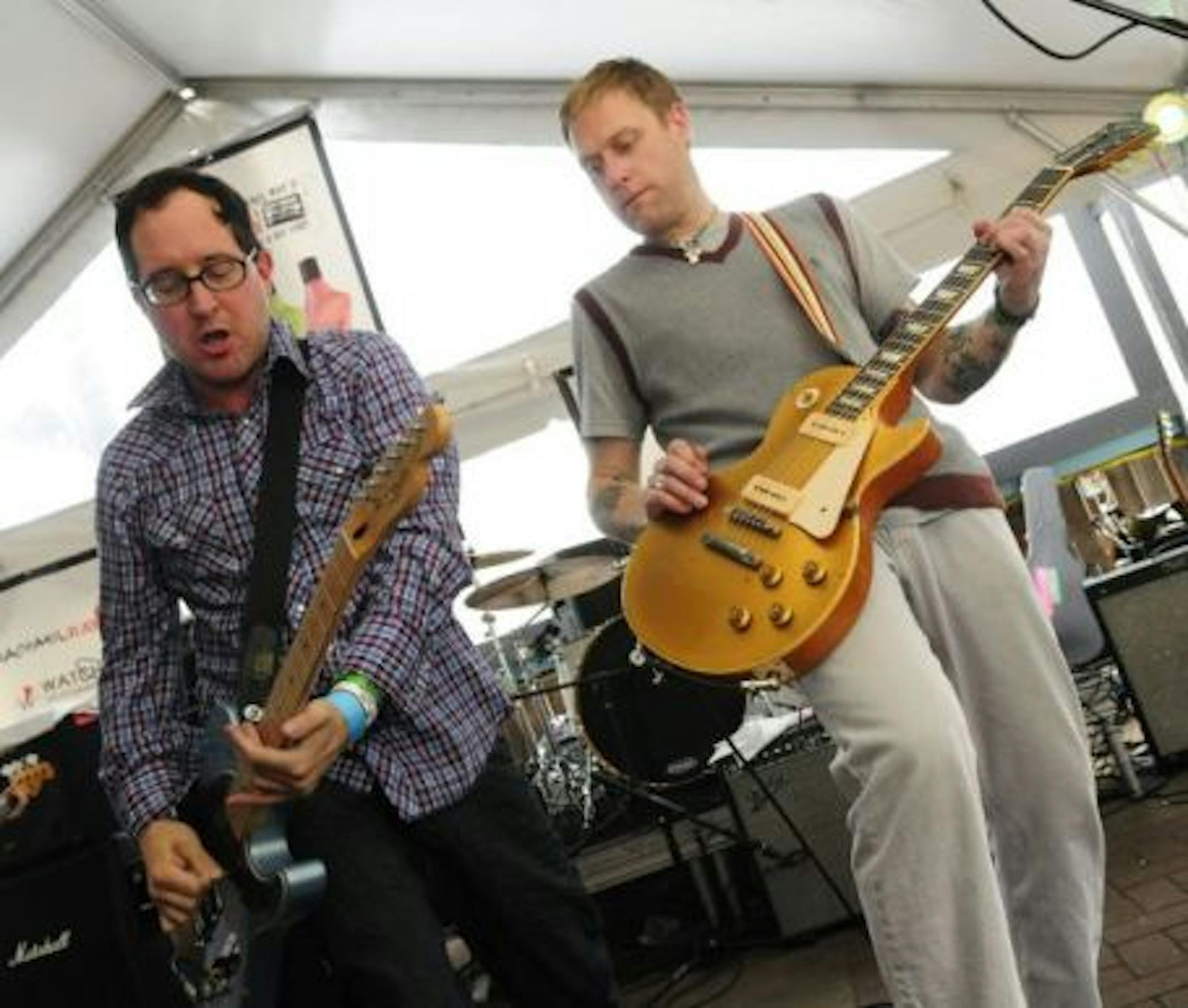 (Hold Steady photo taken by Tony Nelson at last year's Rachel Ray SXSW party; note all the wristbands on Finn, proof he likes to get out while in Austin).
