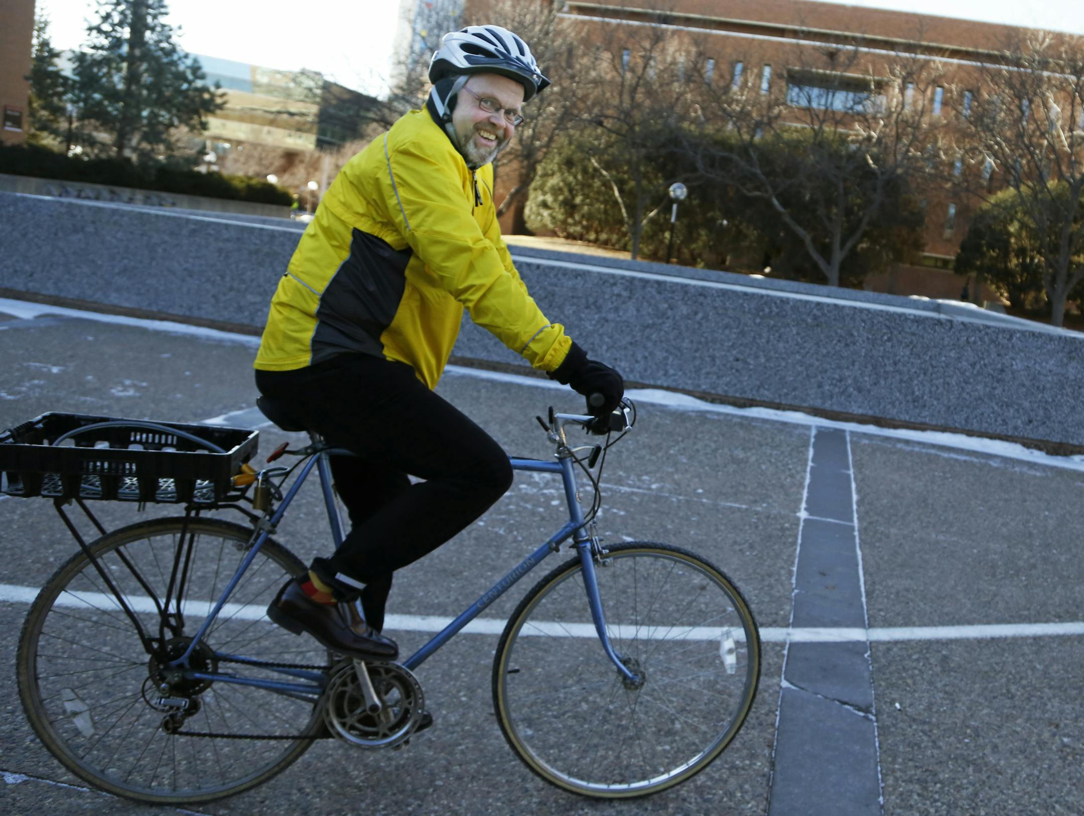 Discovering that he was half-Finnish began a string of serendipitous events for Peter Hendrickson, culminating in a newfound love of bike commuting. When Hendrickson looked at his class schedule for the 2012-13 school year, there was one problem: He only had 25 minutes to get from the University of Minnesota's East Bank, where he wanted to take a Finnish language class, back to Augsburg in time to lead choir rehearsal. Driving and parking would take too long, as would walking. So, Hendrickson dusted off his 35-year-old road bike and hopped on. His total daily commute adds up to about 14 miles. He's grown to love it so much that he usually hits the road — just for fun — on Saturdays and Sundays. He's lost about 20 pounds, eats better, feels happier and hasn't been late to rehearsal yet.