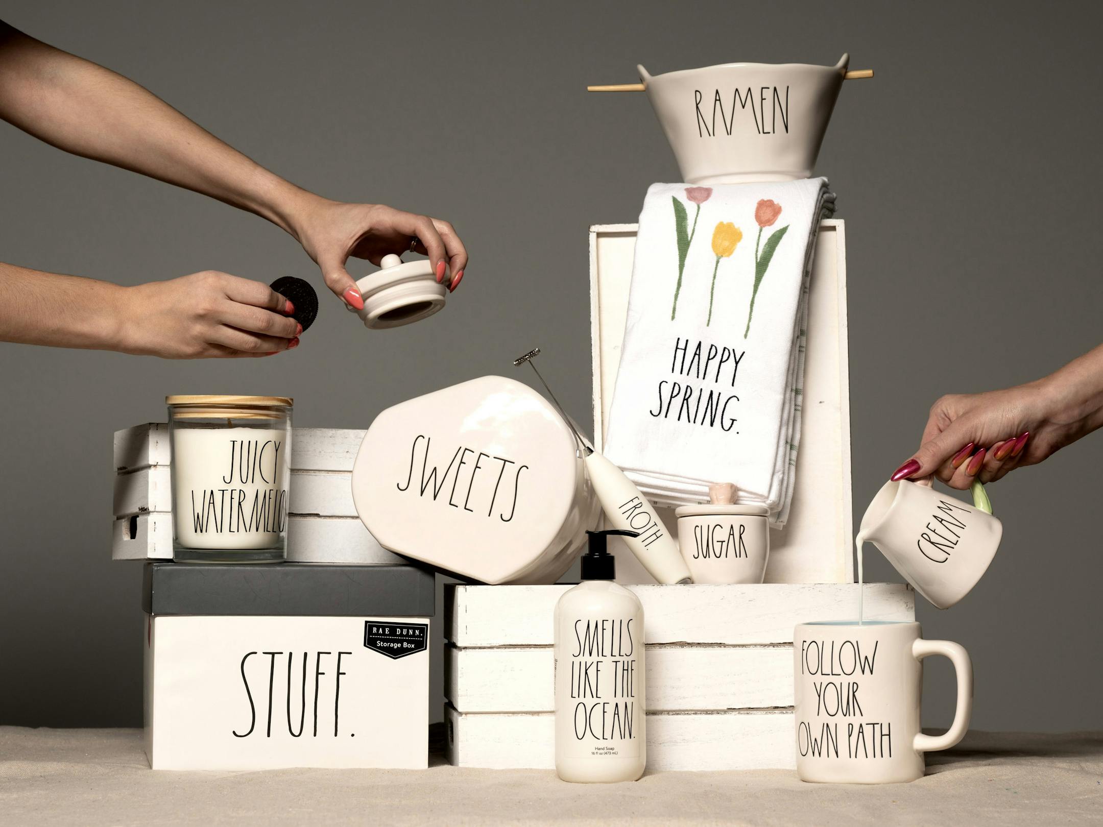 In 1994, Rae Dunn took a ceramics class in San Francisco and figured out almost immediately that she loved everything about working with clay. In particular, she developed a fondness for stamping words onto her pottery pieces as a way to express herself.