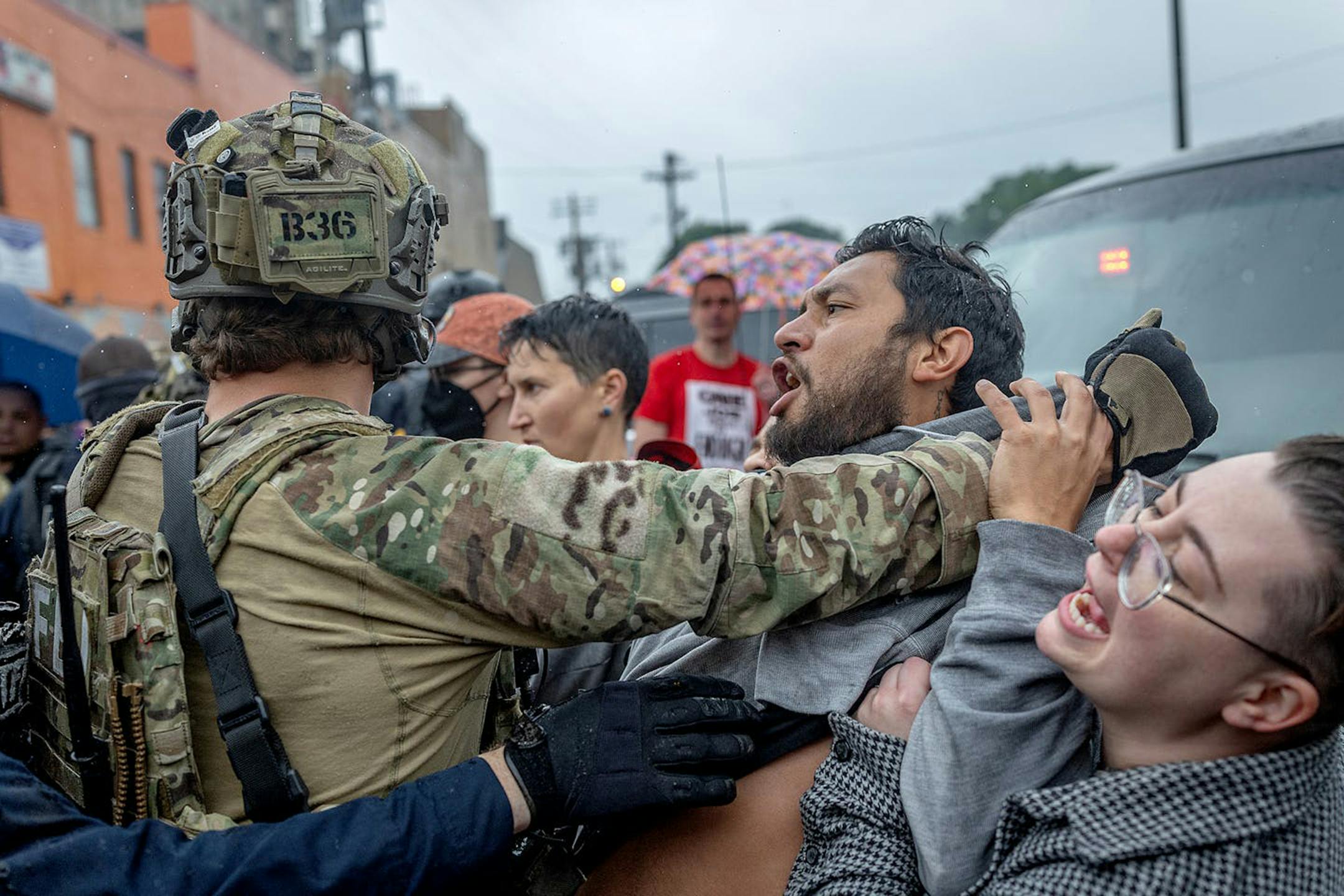 Protesters yelled “shame” and tussled with law enforcement officers they believed were arresting undocumented immigrants.