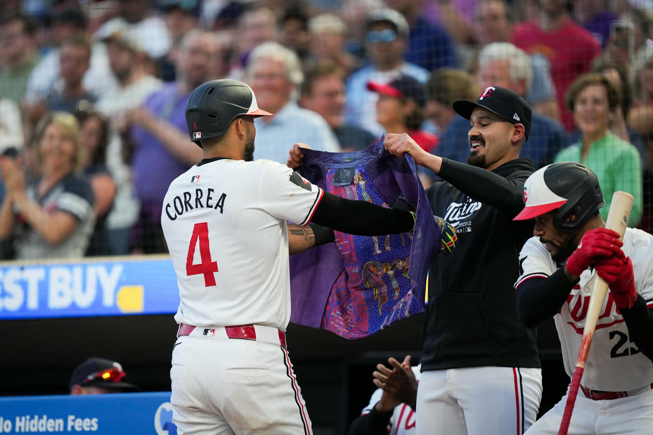 Most Twins players were unaware of the new home run props before Correa donned them for the first time, though some of them saw the vest hanging in the dugout.