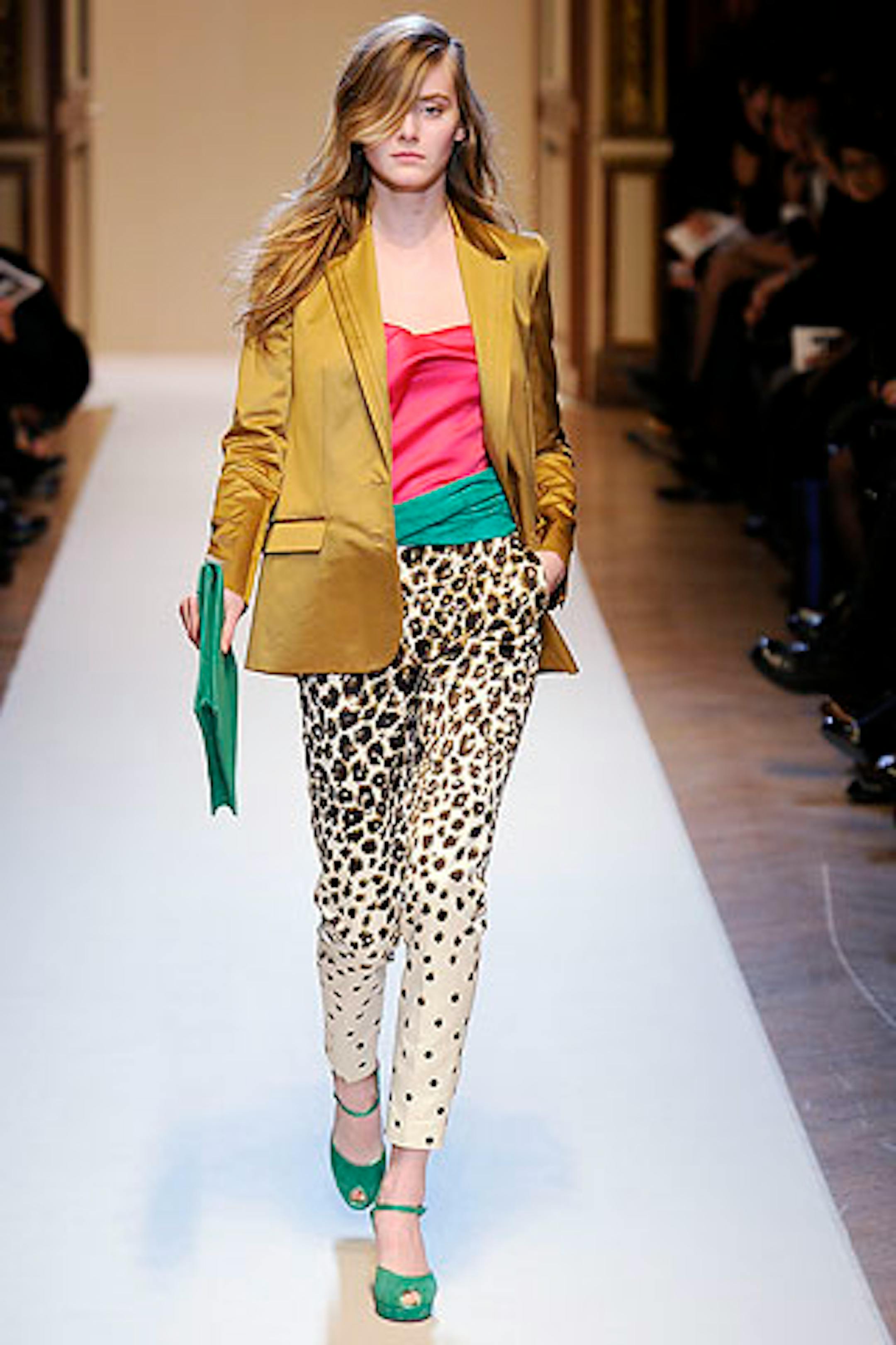 This is a photo of a runway model in the Emanuel Ungaro FW10 ready-to-wear show. She is wearing a kick-ass outfit with some unusual colors and fabulous prints. This runway model and I have different shapes, sizes, budgets, proportions, and shopping resources, but when I look at this photo of her, it inspires me. It makes me want to wear mustard, coral, and green together. It makes me want to try leopard with colors other than my standby reds, teals, and purples. It makes me want to do a big solid sash with a tank, blazer, and printed pants. And yes, it makes me want to purchase those SPECIFIC pants, but that's not the point! The point is despite all of our differences, this image of a runway model in a show from several years ago has sparked my imagination and prompted me to think of ways I can interpret her look for myself.