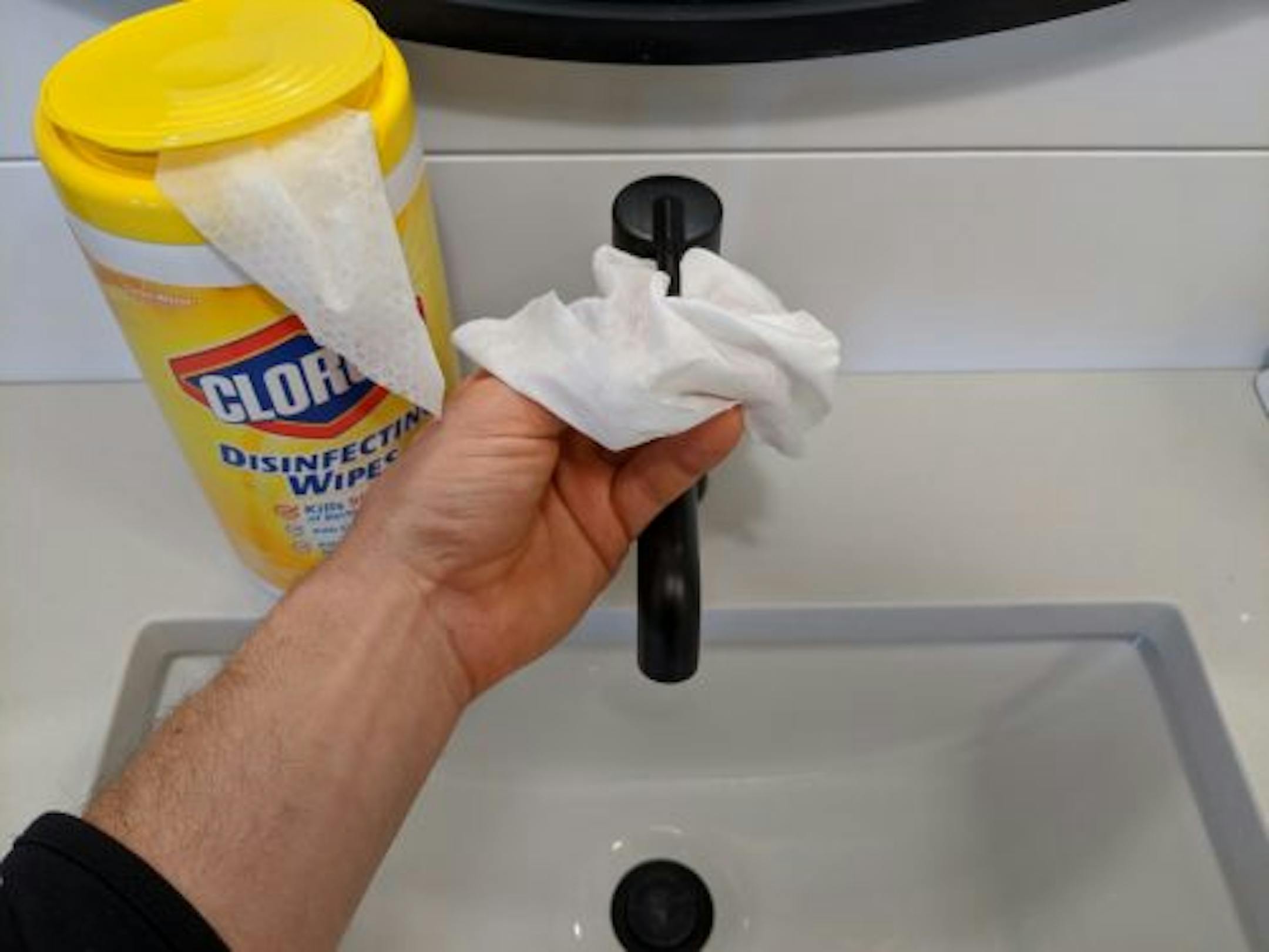 - If available, use disinfectant wipes or the equivalent on faucets and door handles.
