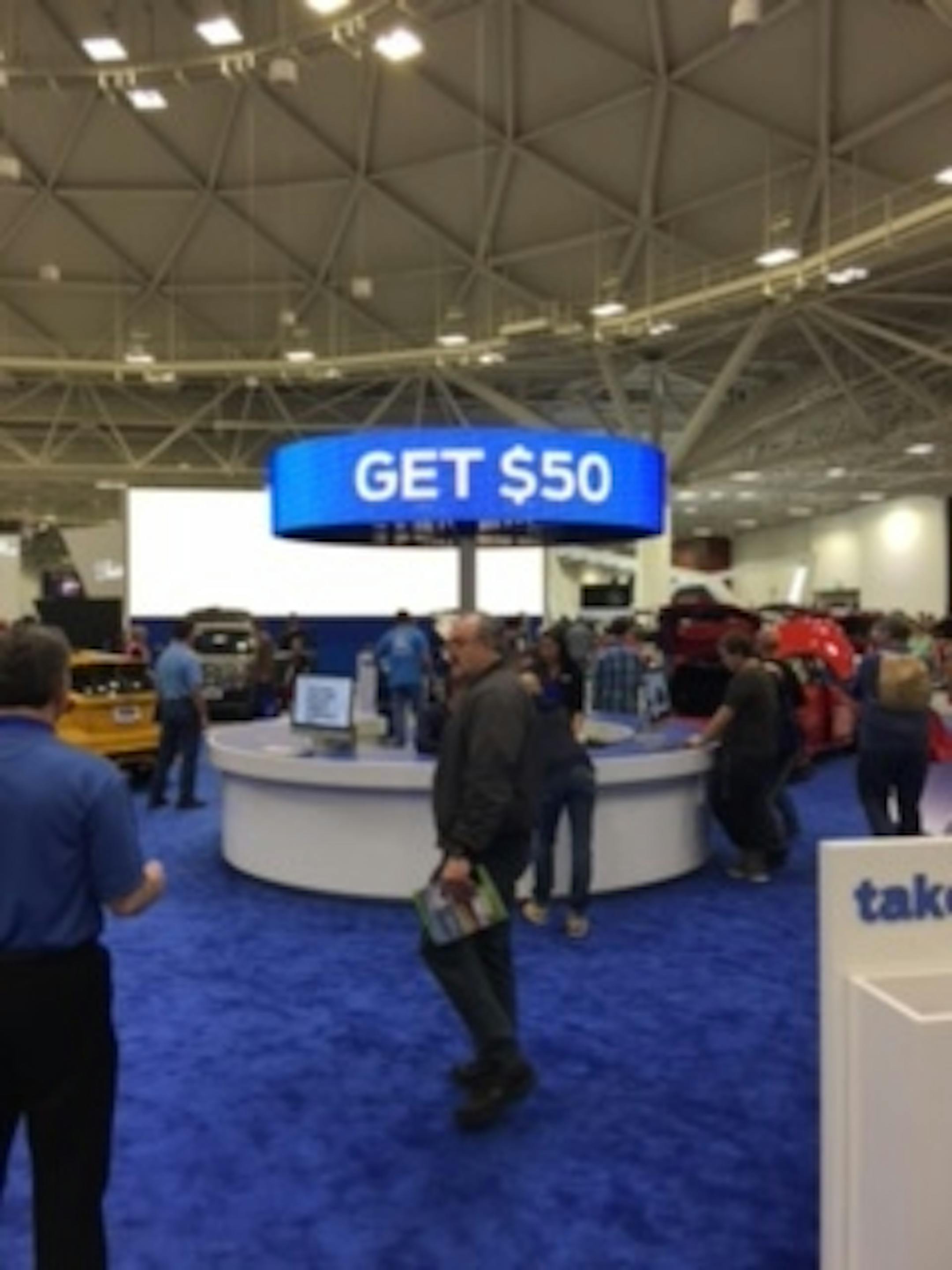 Kia is offering a $25 prepaid Visa gift card if you sign up at the website. by March 31. It's the only manufacturer that does not require you to sign up at the Auto Show.