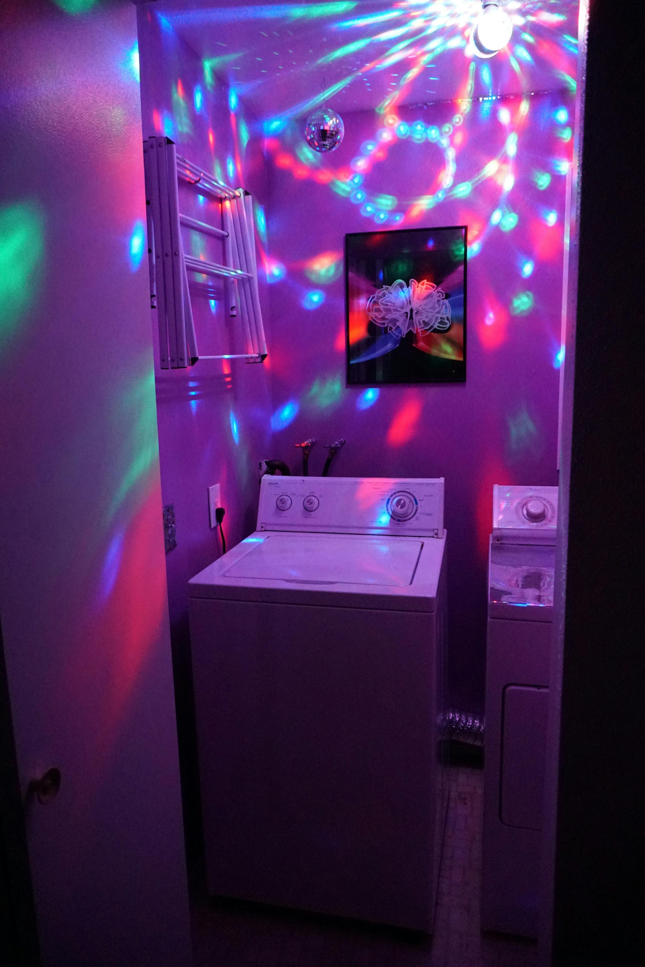 When Monica Dewald and Tamthy Le bought their house in Renton, Wash., last year, the laundry room was run down with a rust-covered dryer. Now, it's a miniature disco, complete with dark-pink walls and a rotating, multicolored overhead light.