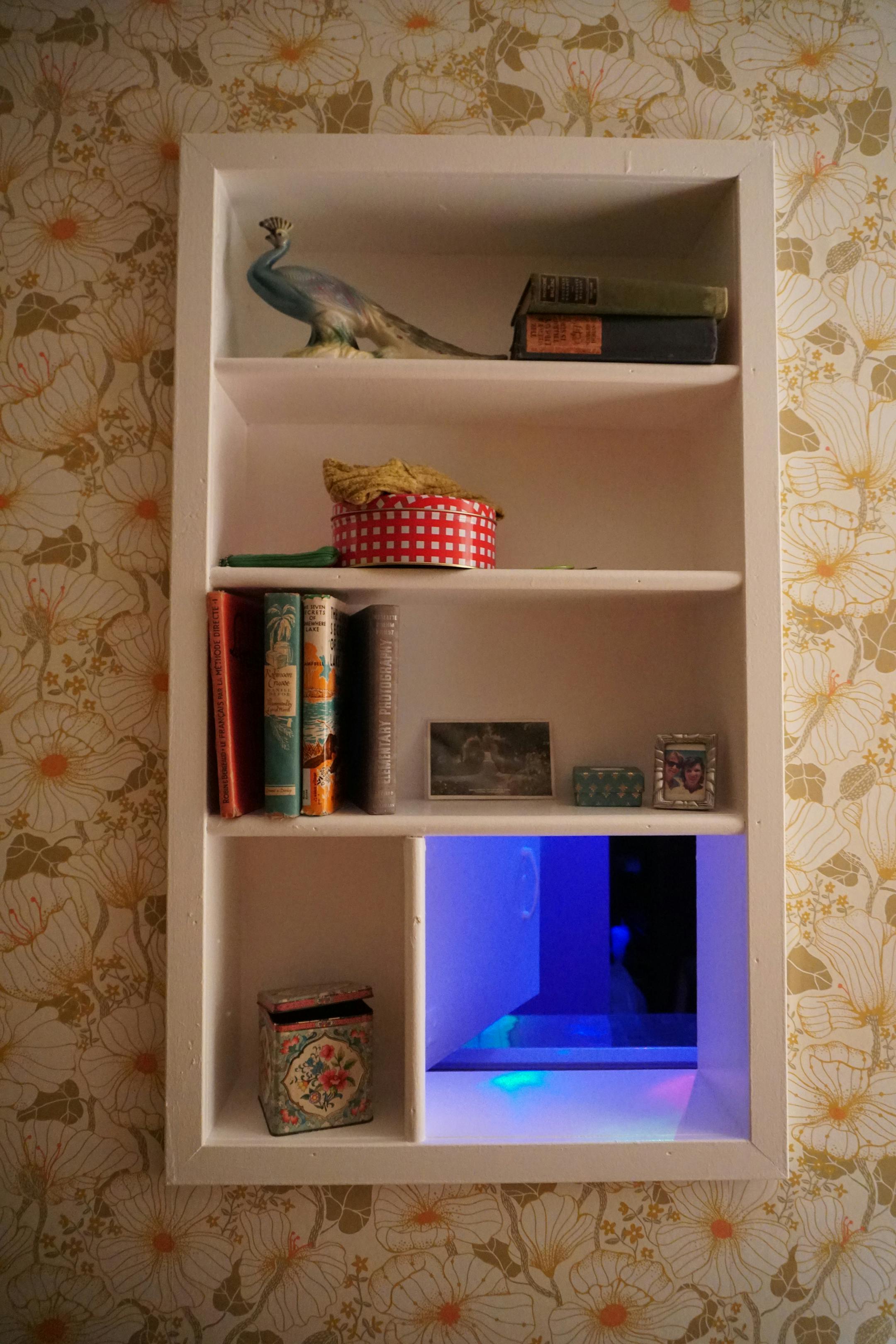 Dewald, a public-school teacher, and Le, a nonprofit administrator, spent under $100 on their entire project, which they tackled in their spare time for about two weeks. Their budget covered paint, a disco lightbulb, a decorative disco ball and mirror tape to cover the rust on the top of the dryer. The darker paint and low lighting also help mask imperfections on the walls. As a fun bonus, the room is viewable from another room through a peek-a-boo opening in some built-in shelves. Dewald says it feels like peering into a speakeasy.