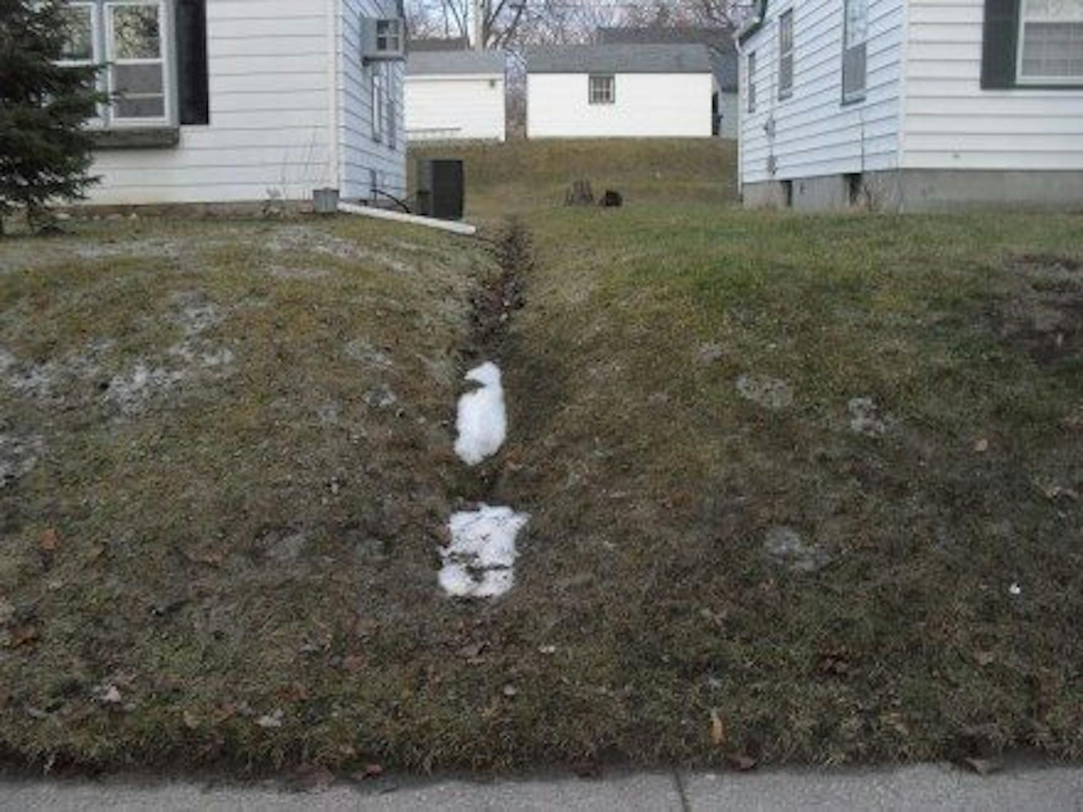 In cities like Minneapolis and Saint Paul, houses will often be too close to each other to allow for proper grading. In these cases, one option is to create a swale in the yard, which will allow for water to go around the house in a type of trench.