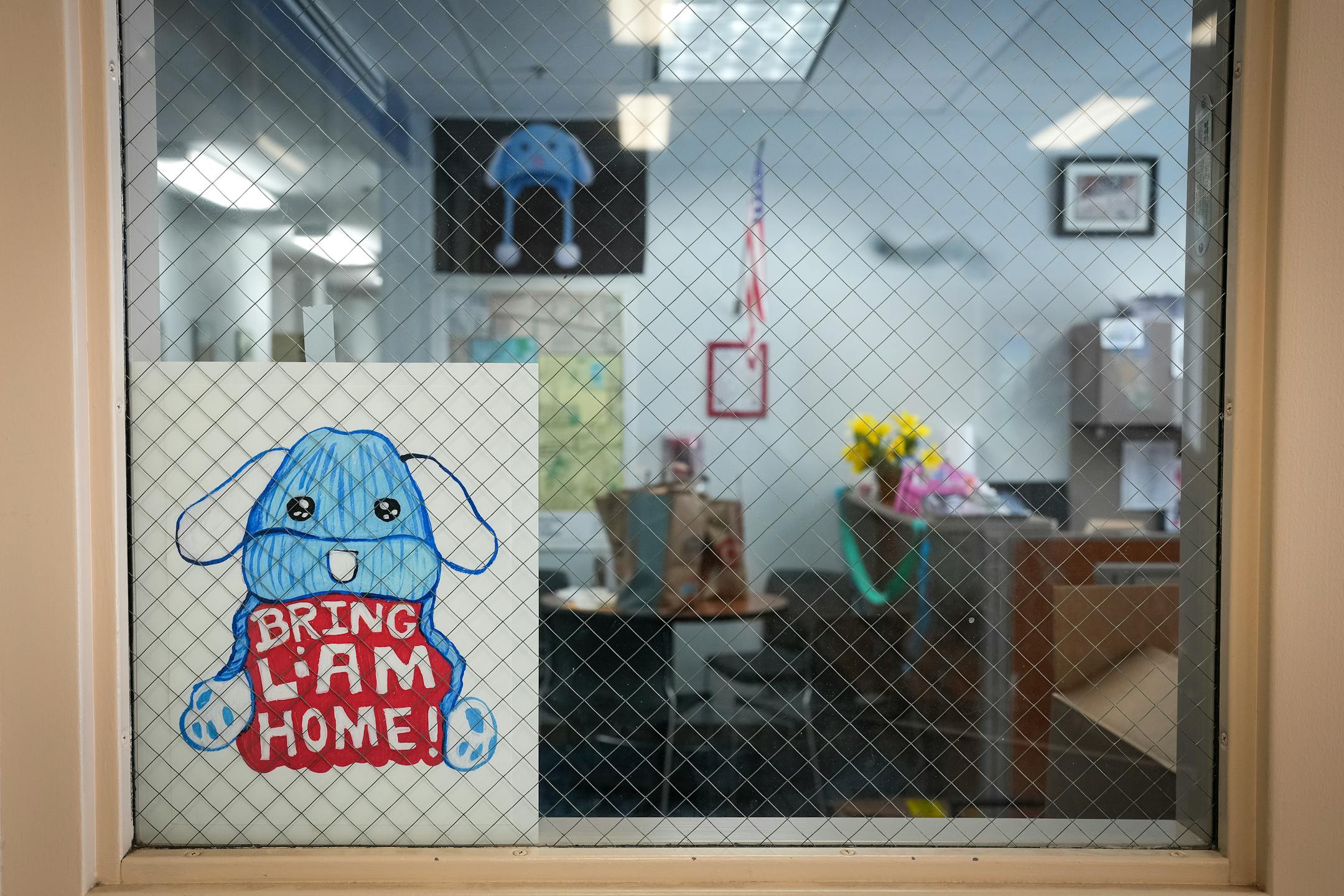 A sign for Liam Conejo Ramos is displayed in the office at his school, Valley View Elementary, in Columbia Heights on Feb. 19. (Leila Navidi/The Minnesota Star Tribune)