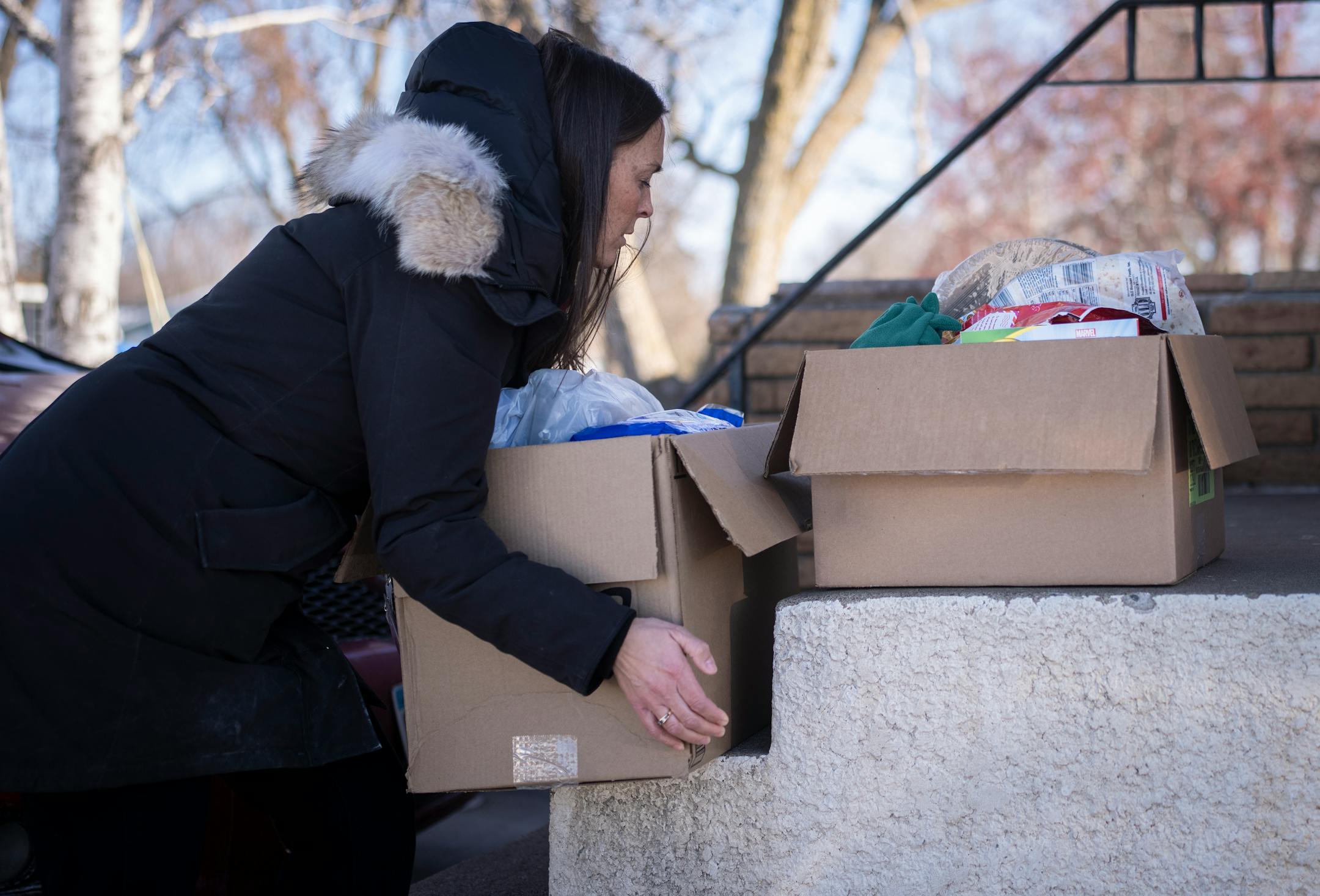 Fridley student support services director Danielle Thompson delivers groceries to a family in need on Jan. 27. (Renée Jones Schneider/The Minnesota Star Tribune)