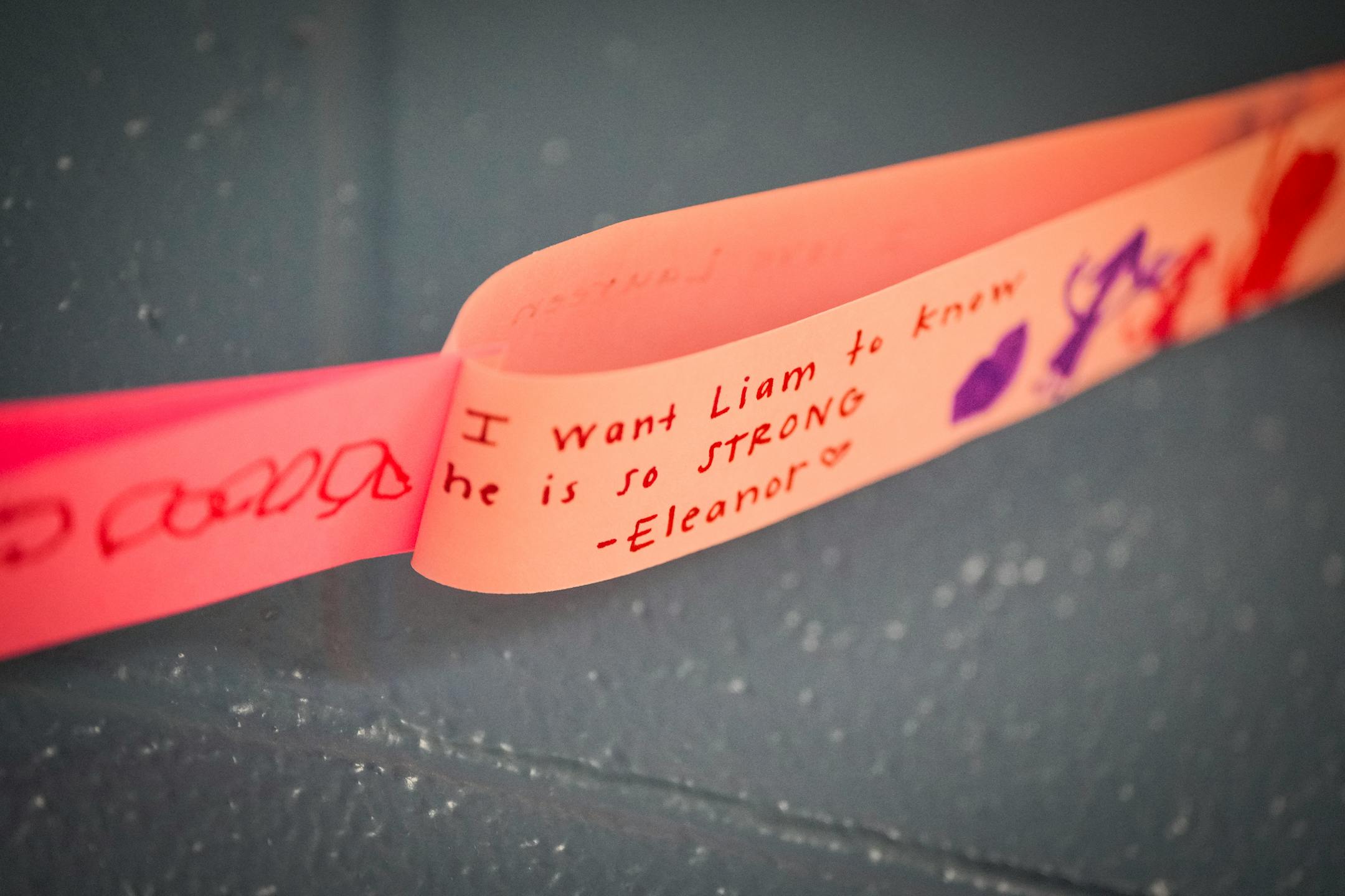 One of the school’s hallways is decorated with a long paper chain of hearts with notes from students — “I want Liam to know he is so strong,” read one. Another said, “I hope the world can be a better place.”