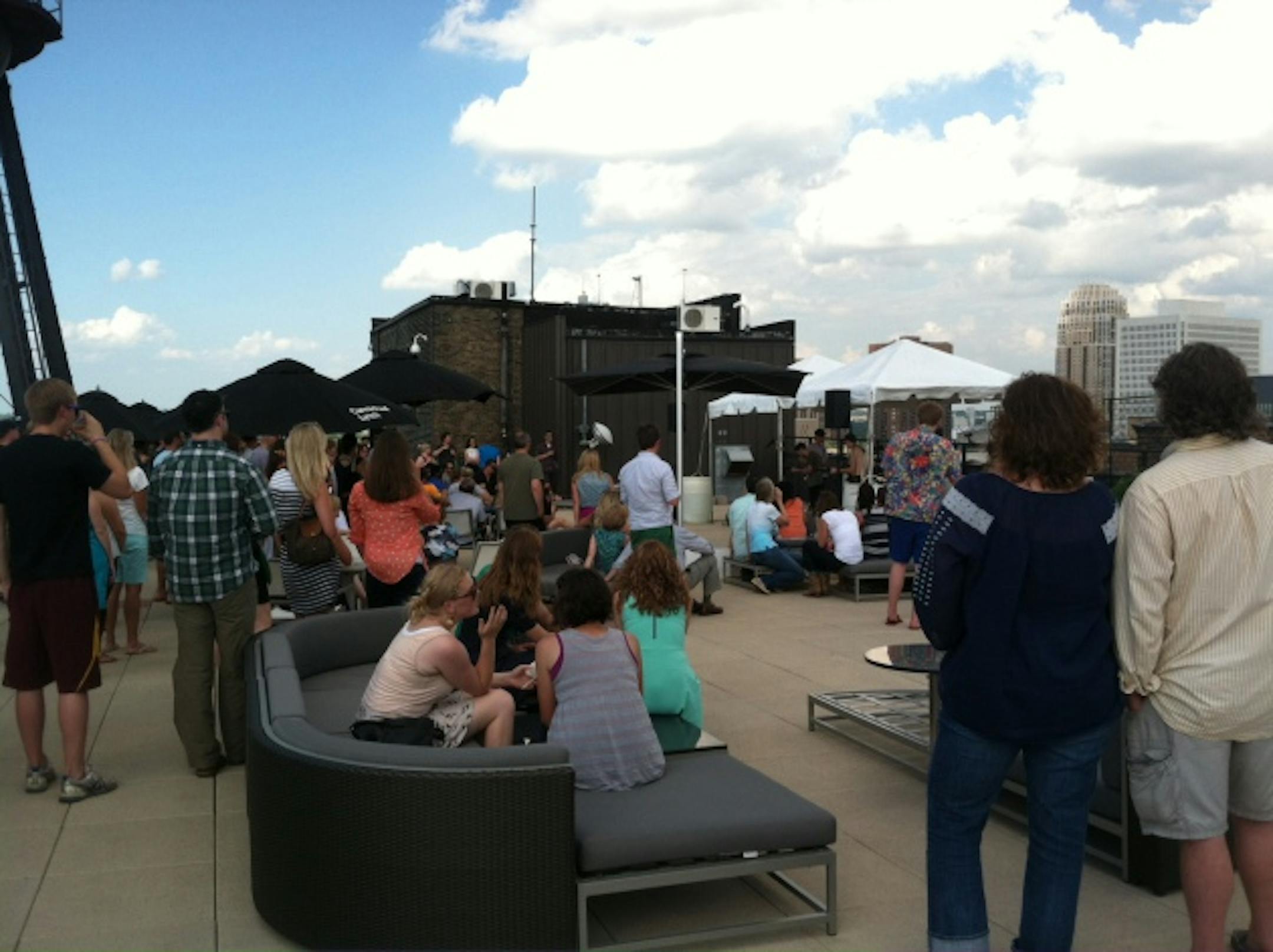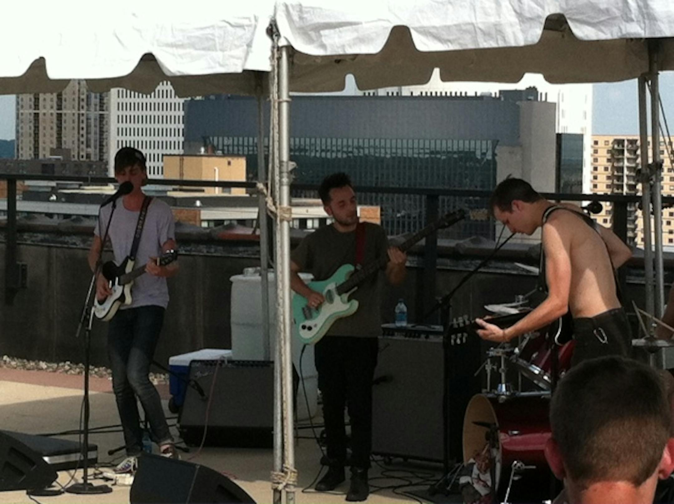 After spending all of 2013 off the grid, England's favorite Minneapolis band, Howler, went to great heights to unveil new songs and a new drummer Wednesday afternoon. The barely-legal-aged, chop-poppy punk band played an invite-only party on the 12th floor rooftop patio above primo ad agency Carmichael Lynch in downtown Minneapolis, overlooking Target Field and the Warehouse District. Dawes and Trampled by Turtles played the same gig before them as a pitch of sort for song placement in TV ads and other creative marketing areas, according to agency reps.