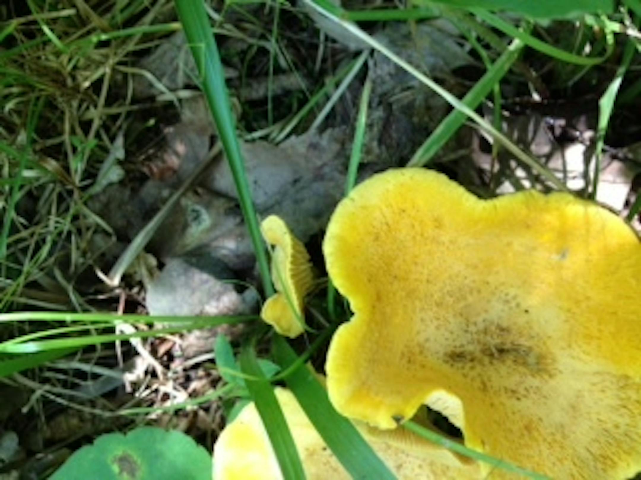 This last weekend we were lucky again. I found these mushrooms hiding to the left of my walking path. If you are accustomed to the plain button mushrooms found in grocery stores, you'll be amazed at the difference in mushroom found in the wild.