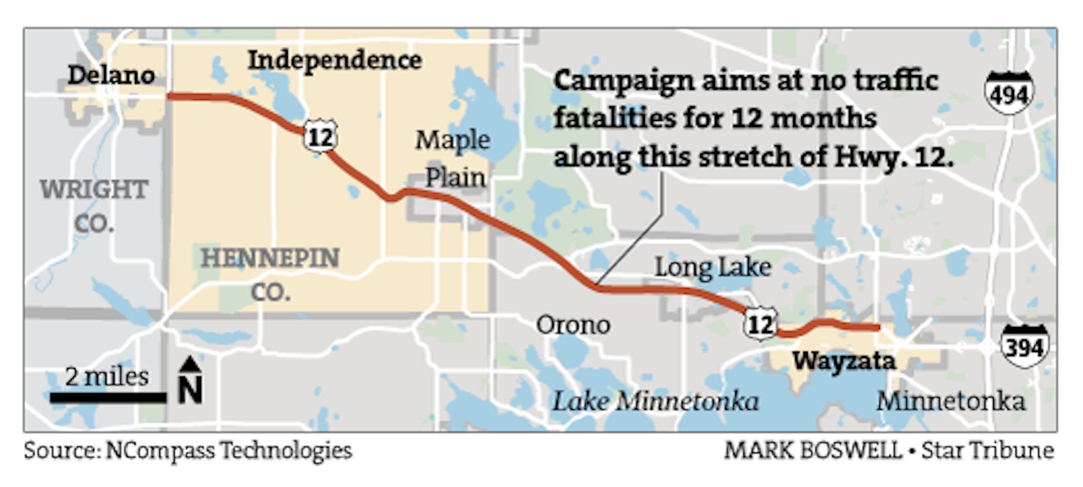 The stretch of Hwy. 12 from Wayzata to the Hennepin County border that is the focus of a campaign to bring traffic fatalities to zero for 12 months.