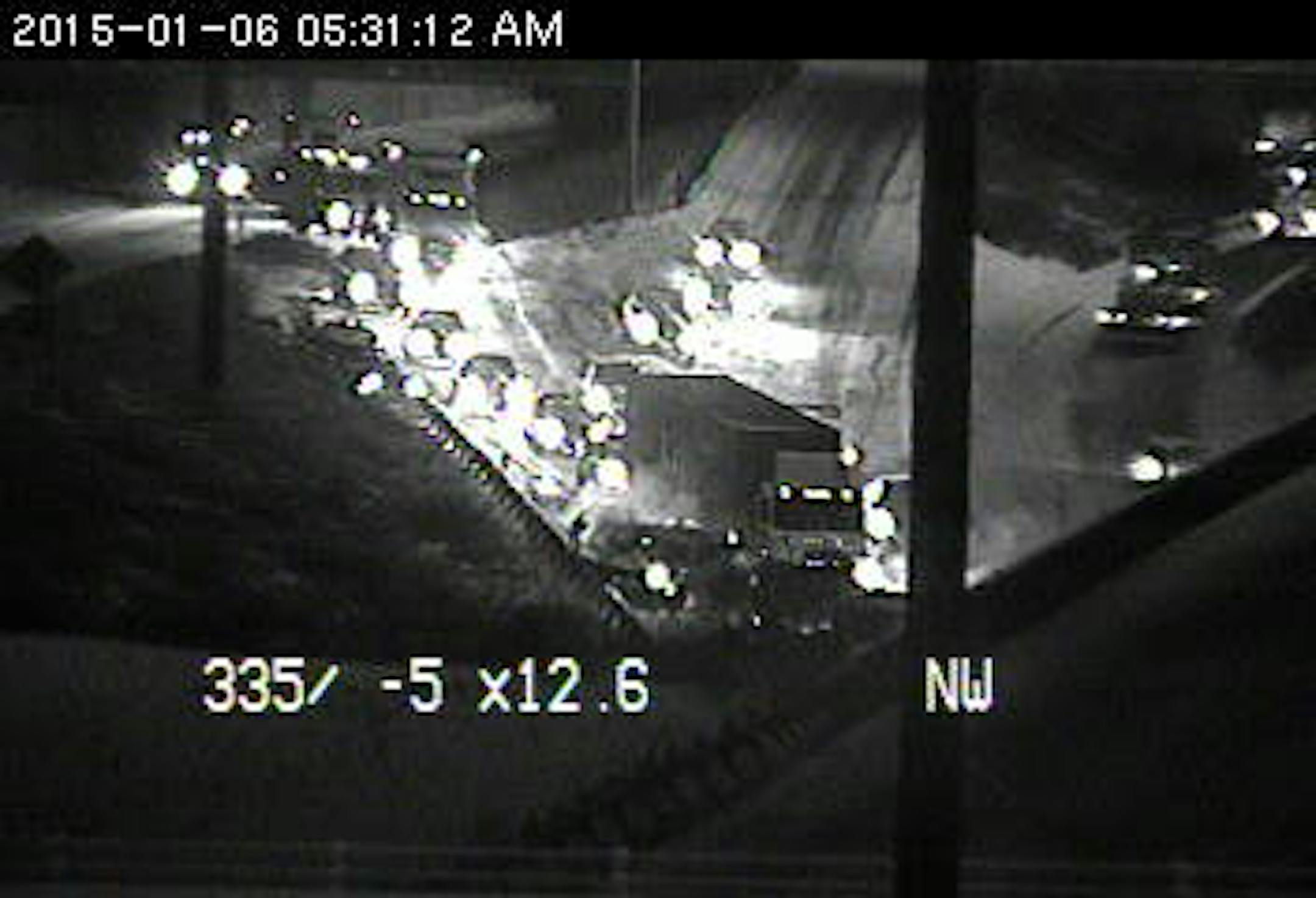 According to Nielson, one vehicle spun out on the ramp then the other vehicles, which included a semitrailer truck, slid into the first vehicle creating the pileup. Two people were taken to the hospital with minor injuries, she said.