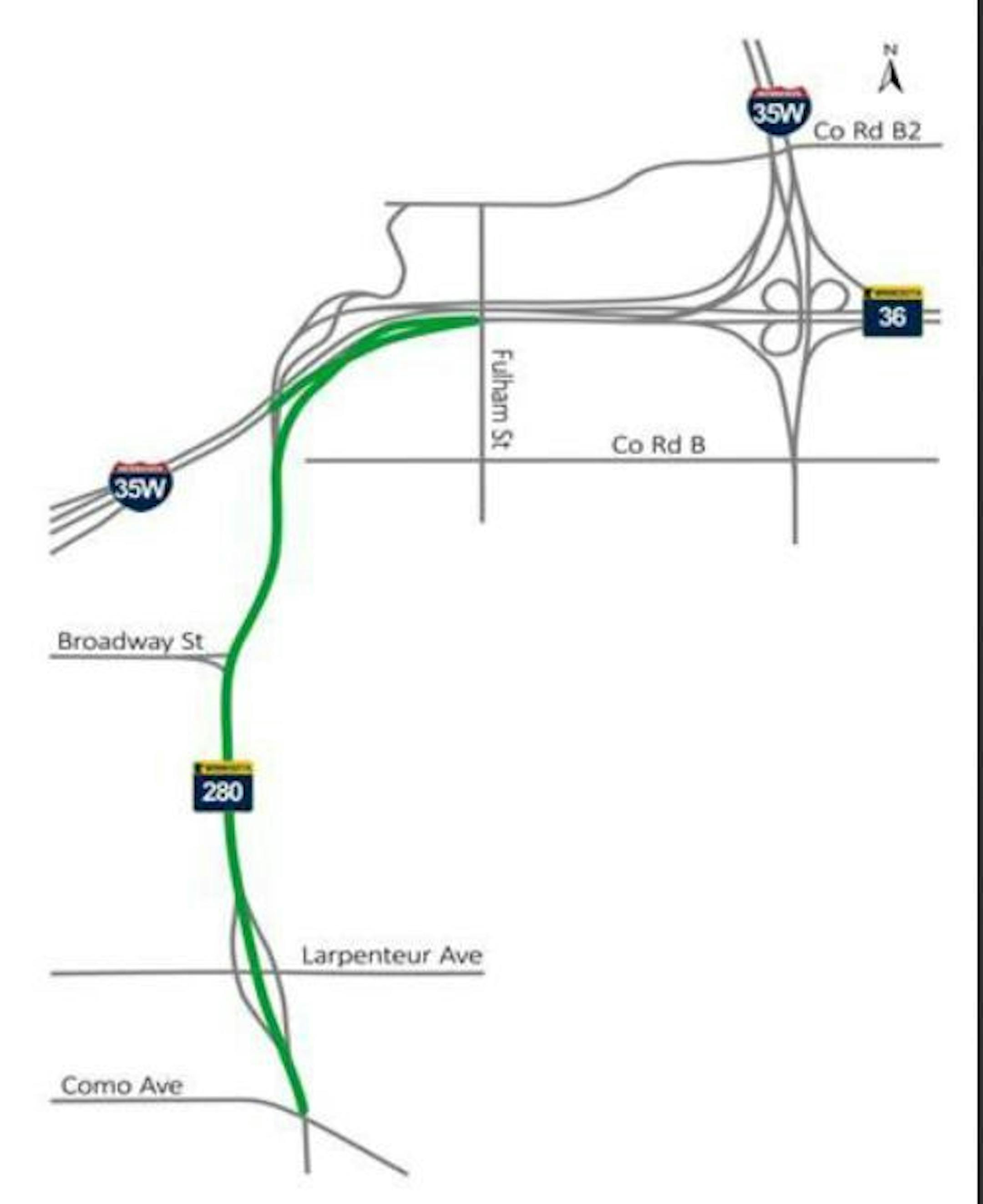 The project also includes repairing and resurfacing Hwy. 280 in both directions between I-35W and Como Avenue, rebuilding the approach from Como Avenue to Hwy. 280, installing a concrete median barrier and new guardrails north of Larpenteur Avenue.