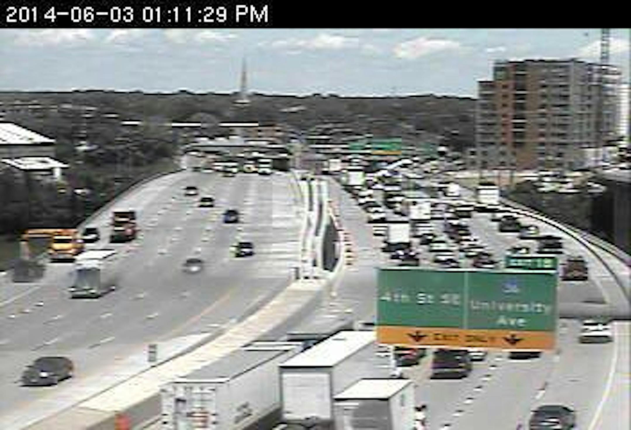 Two northbound traffic lanes were blocked at University Avenue for about two hours, backing up traffic through downtown back to the Lake Street exit. By 3 p.m. the scene was clear and traffic was moving normally.