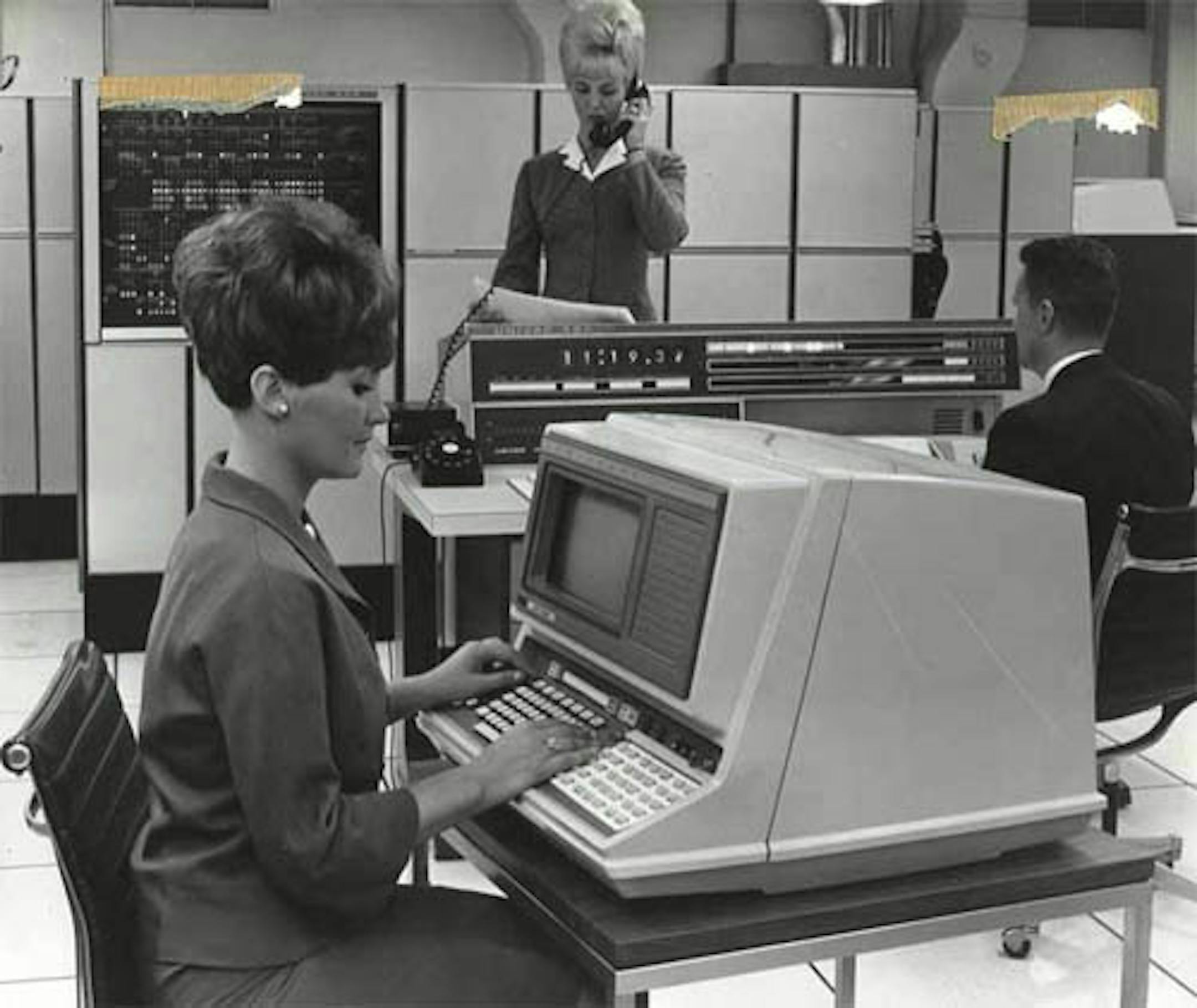 No idea what the machine is, but I can hear the clacking of the keys, and remember how much it took to work those keyboards. People had stronger fingers back then, I think. All this swiping and pinching has weakened us, and made us vulnerable to takeover by foreign elements.