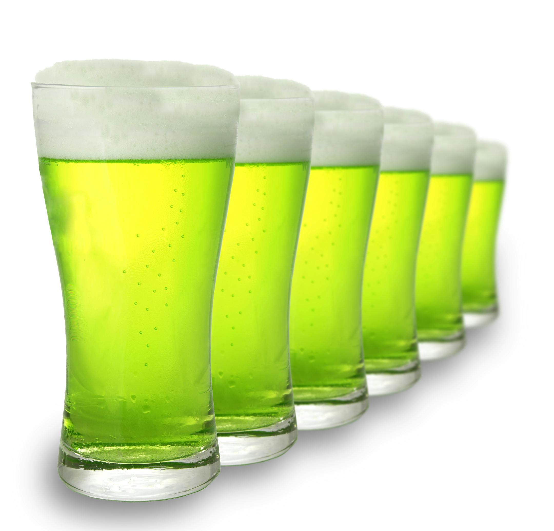 Green beer. Most Irish beer is dark brown. Adding green food coloring would just turn it black. The dyed beer practice likely originated in the 1950s among college students in Ohio.