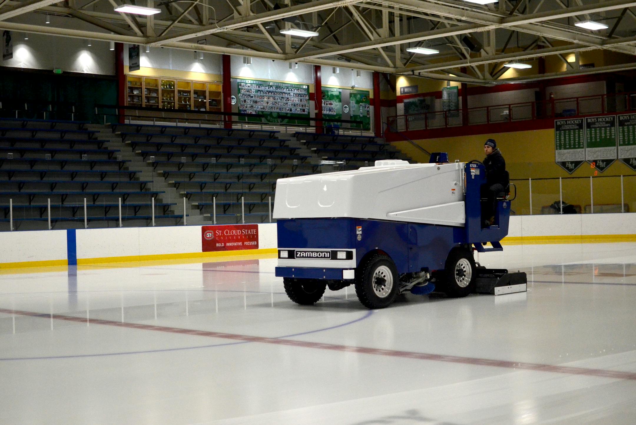 Last year, McCabe said, Aldrich Arena alone consumed as much electricity as 60 average U.S. homes. That energy, which excludes the natural gas burned to heat the facility, largely comes from refrigerating the floor to maintain the ice, he said. The electric Zamboni and overhead lights also use a good amount of power, he said.